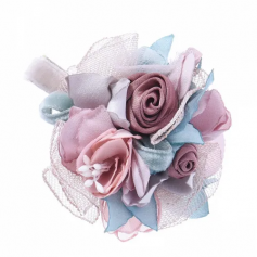 Аксессуар в своём составе имеет органзу и шёлк нюдовых оттенков, а также бархат глубокого цвета морской волны.