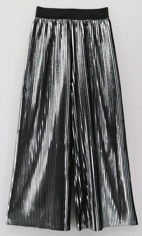 Кюлоты на резинке. Крой свободный. Без карманов. Плиссе с металлизированным эффектом
