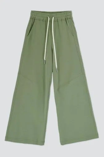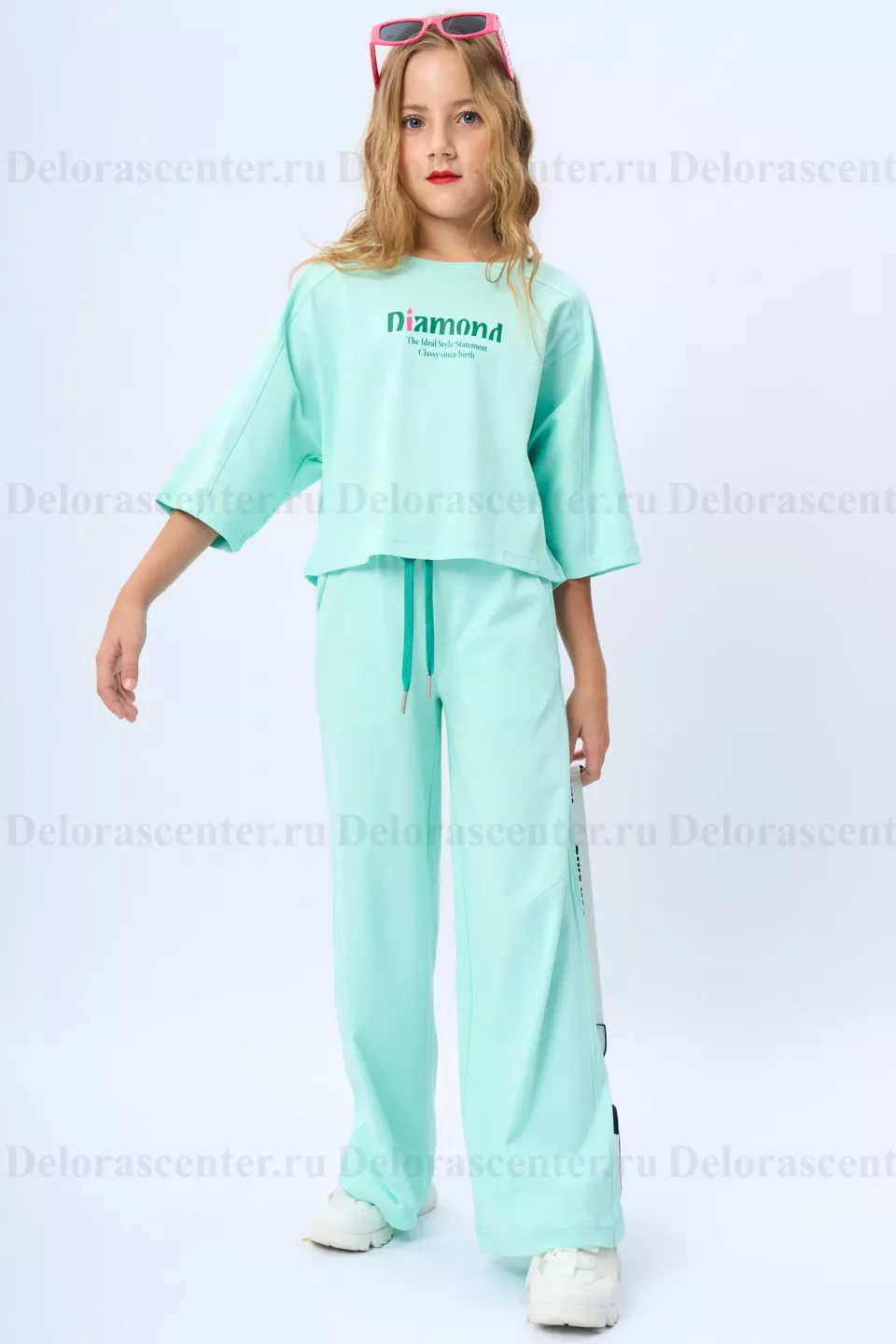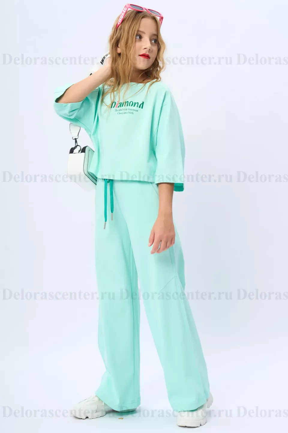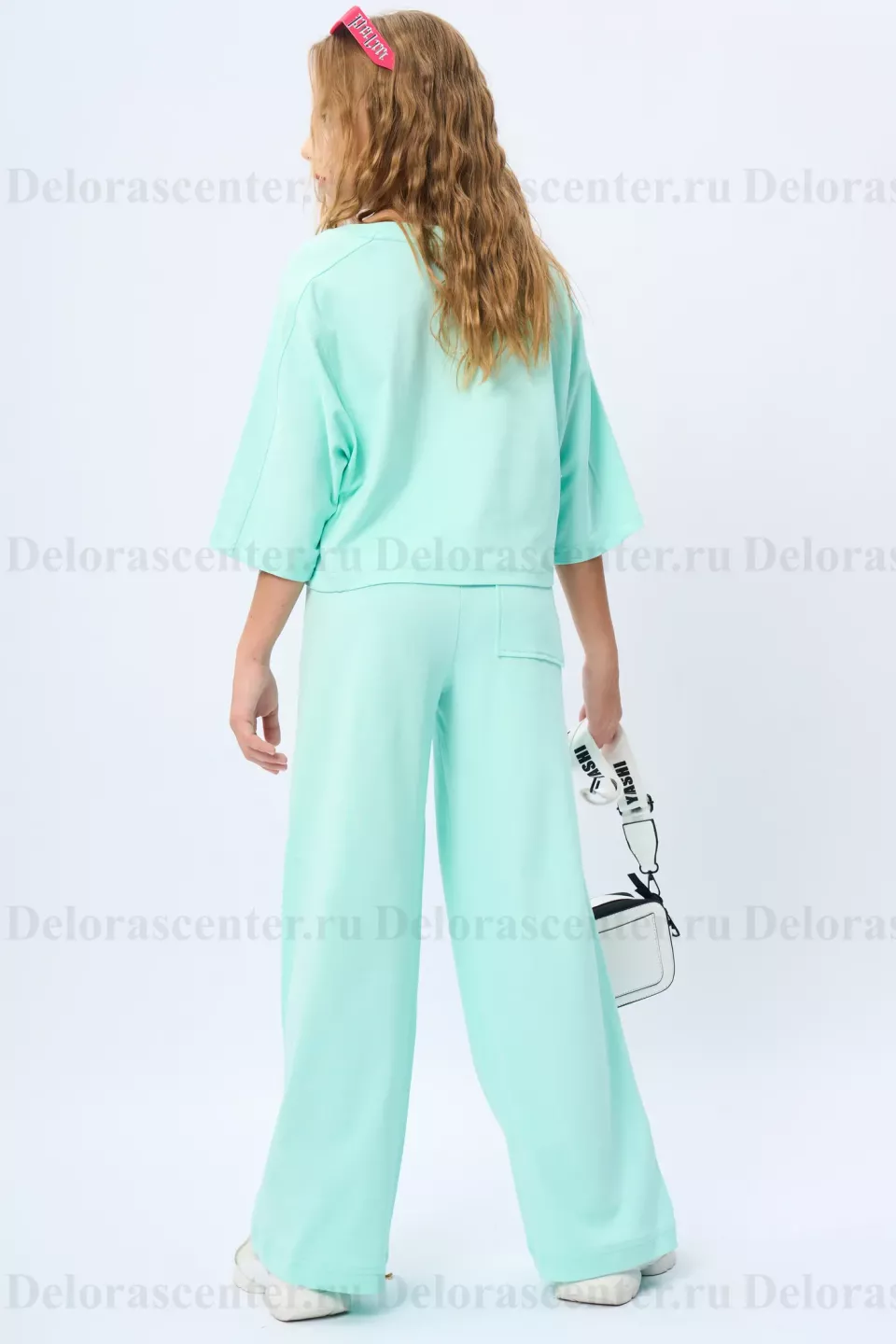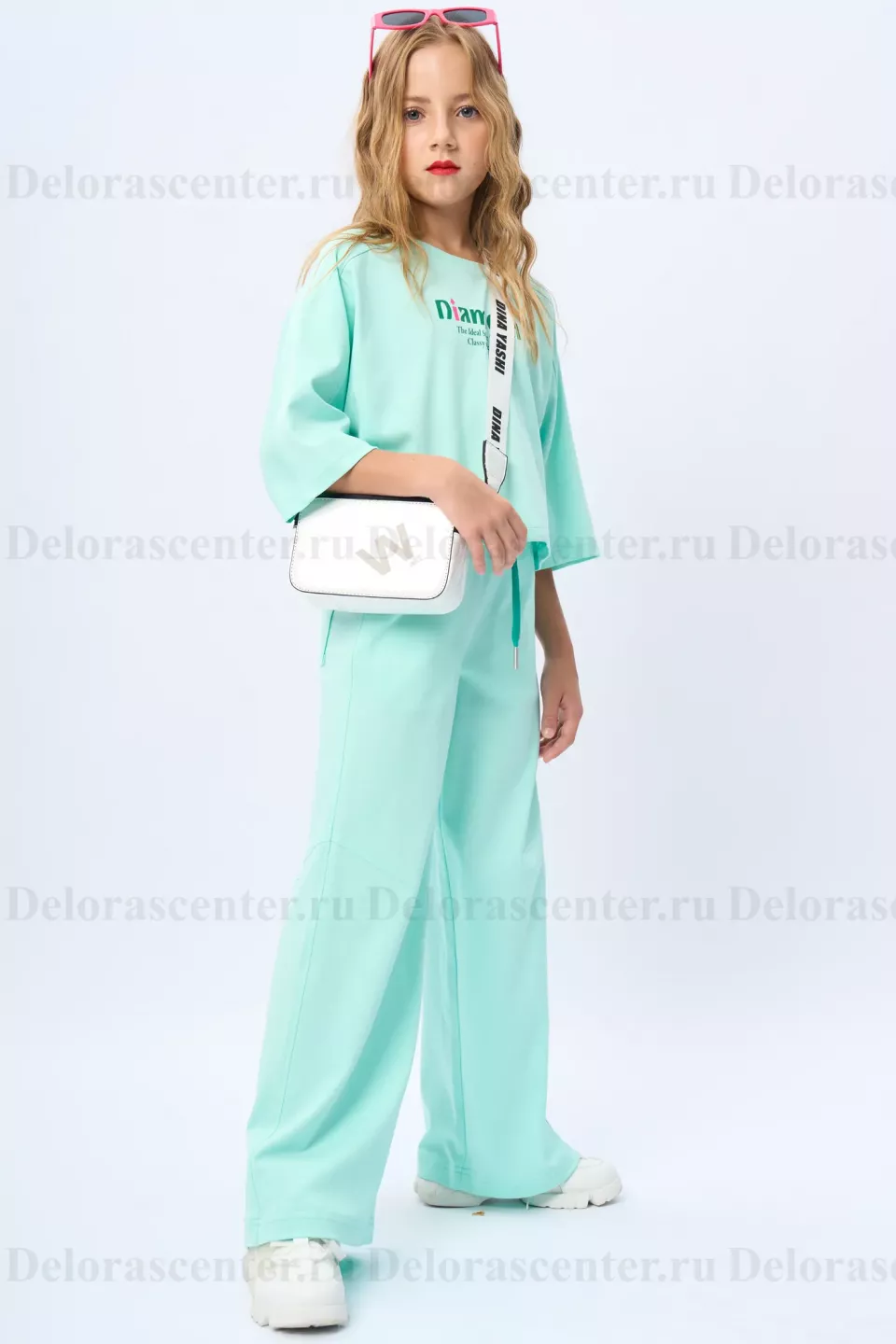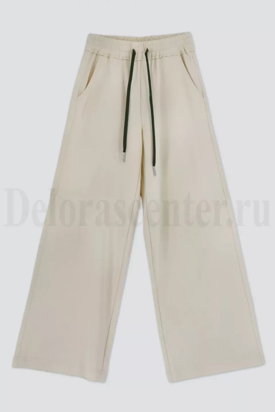 Летние брюки для девочки подростка сшиты из хлопковой ткани. Это кюлоты с высокой линией талии и ластичным поясом с декоративным утягивающим шнуром. Штанины широкие и слегка расклешенные от бедра. Есть стандартные врезные карманы по бокам и один накладной сзади. Купить такие универсальные брюки можно на каждый день. Они хорошо сочетаются почти с любым верхом.