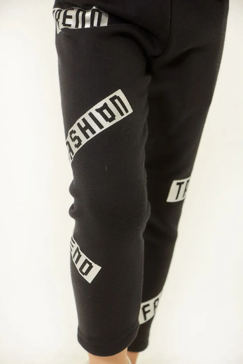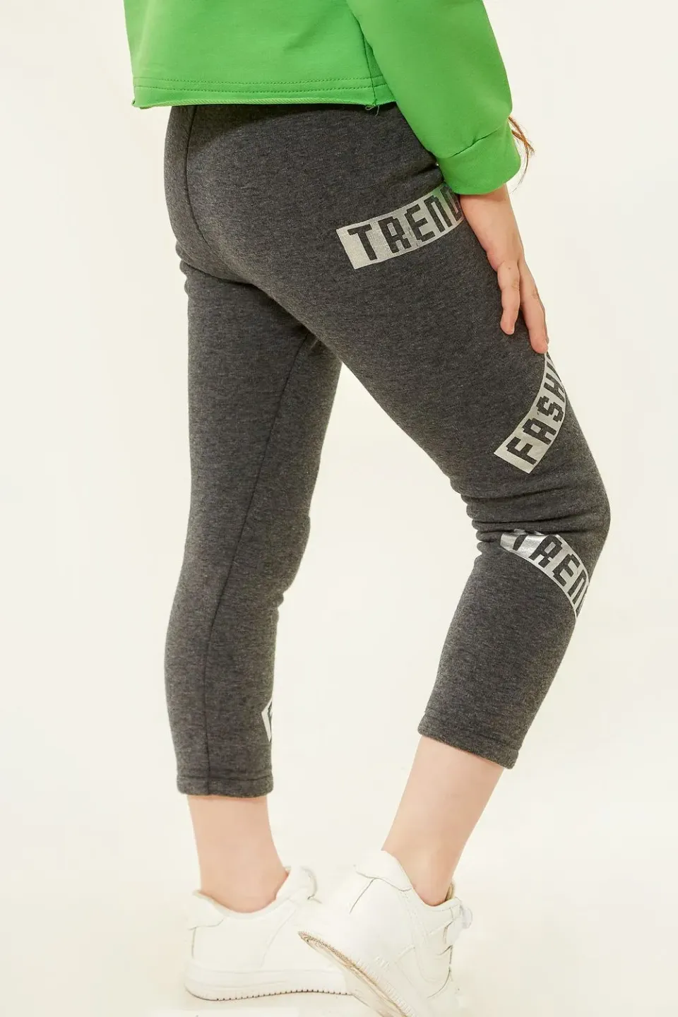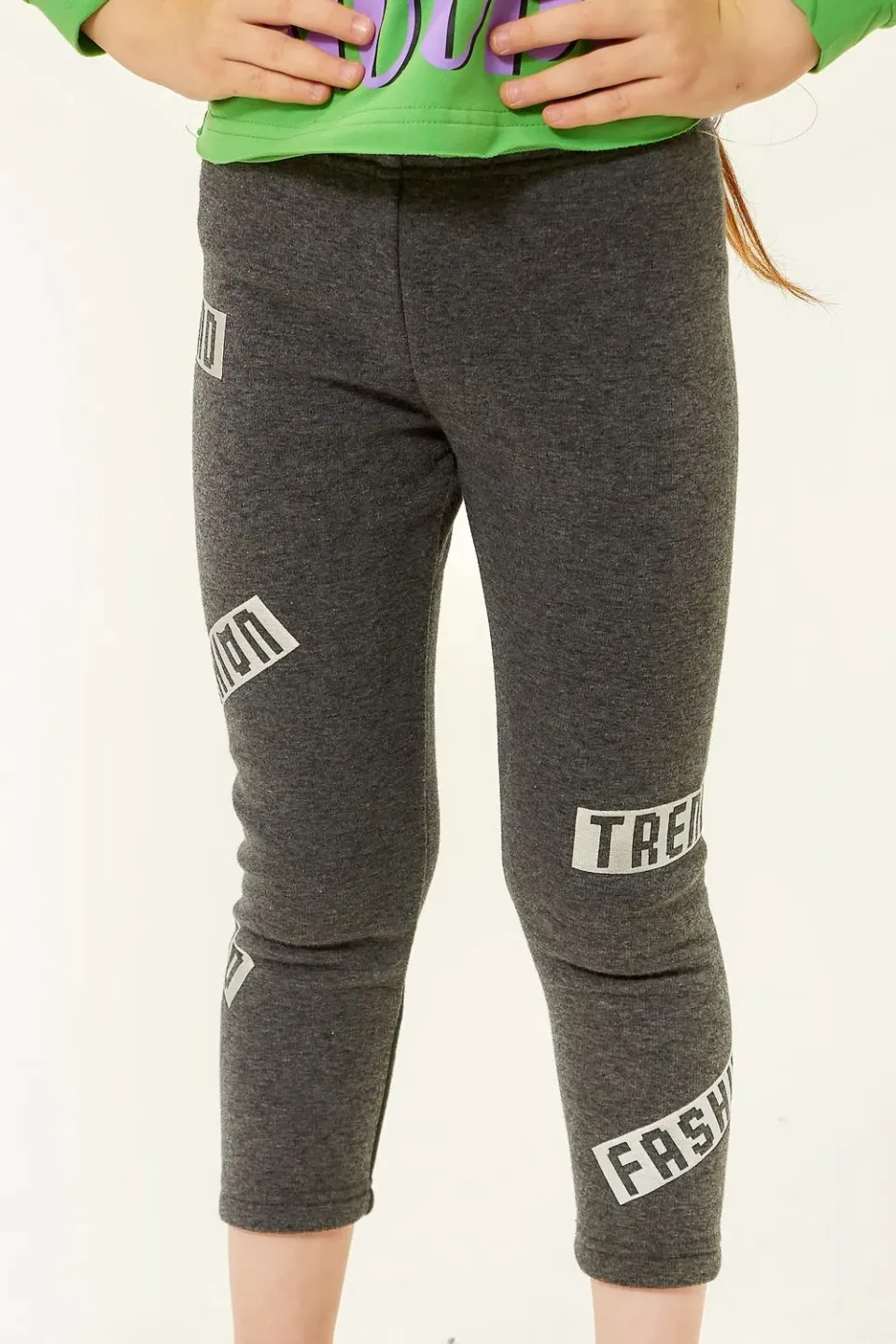 Качественные лосины для девочки. Декорированы диагональными надписями на английском языке вдоль всего изделия. Модель представлена на выбор в двух цветах — черном и сером, на любой вкус. Лосины отлично подойдут для активных прогулок и занятий спортом.