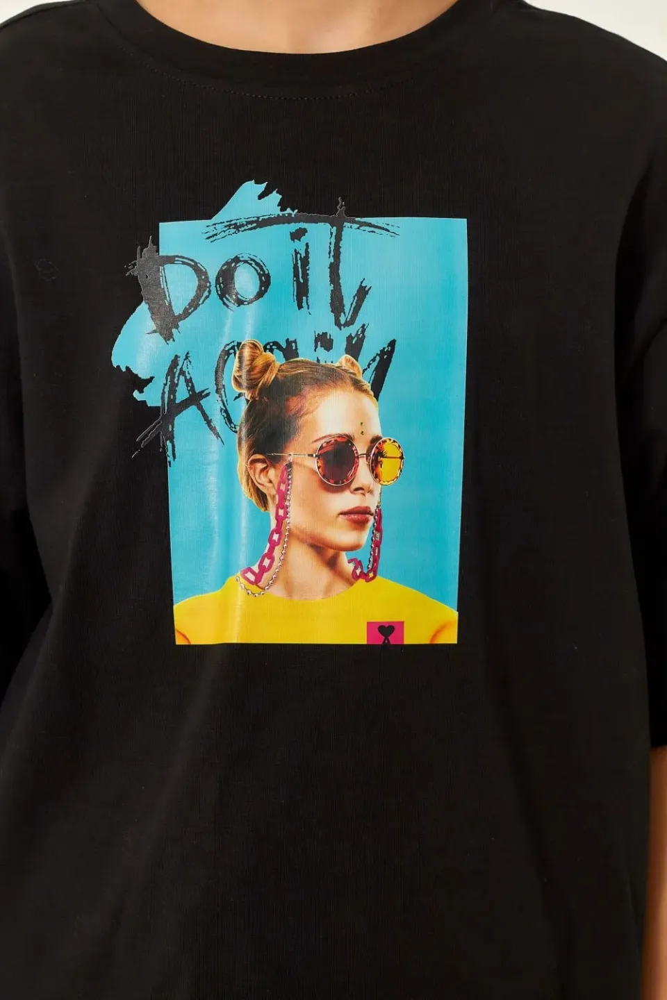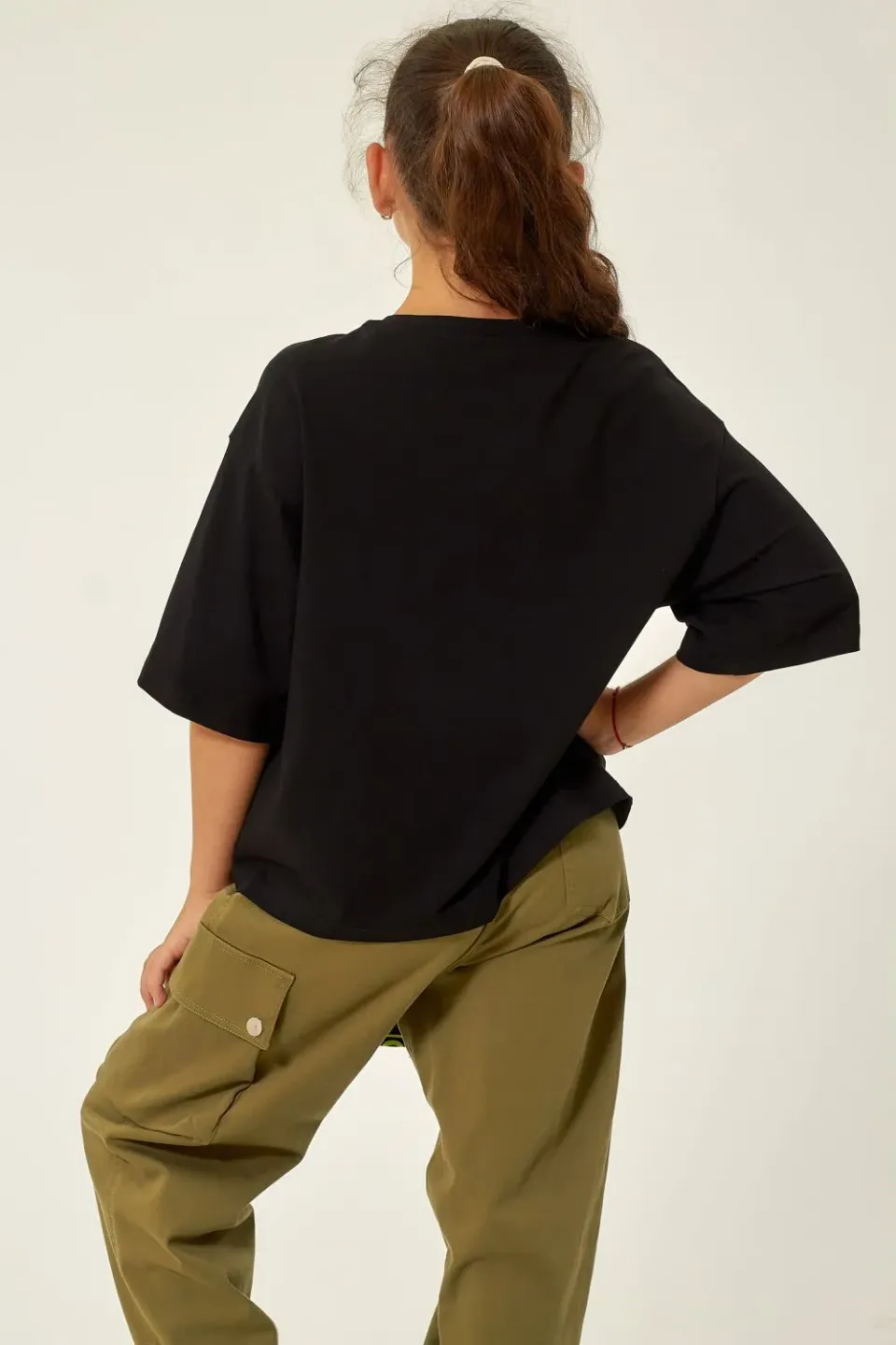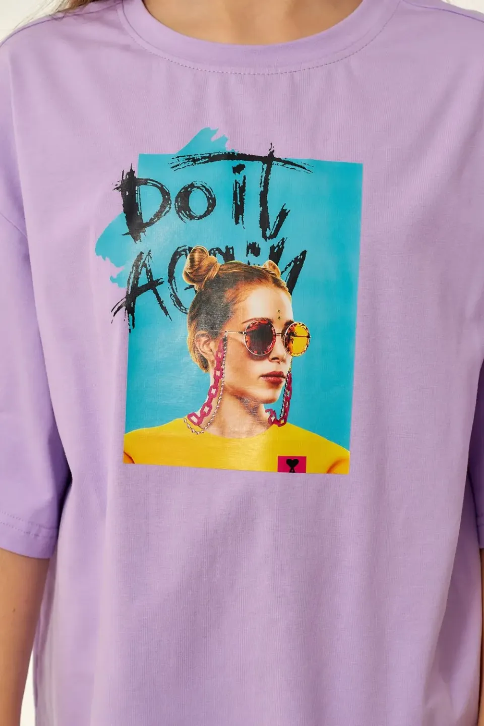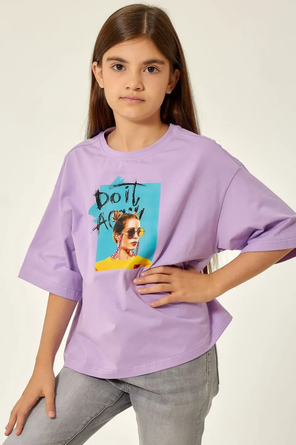 Укороченная подростковая футболка на летний сезон. Декоративная деталь выполнена в технике фотопечать. Стирка в рекомендуемом на этикетке режиме сохранит внешний вид украшения. Футболка свободного фасона, из тонкой трикотажной ткани. Материал приятный, гладкий, натуральный.