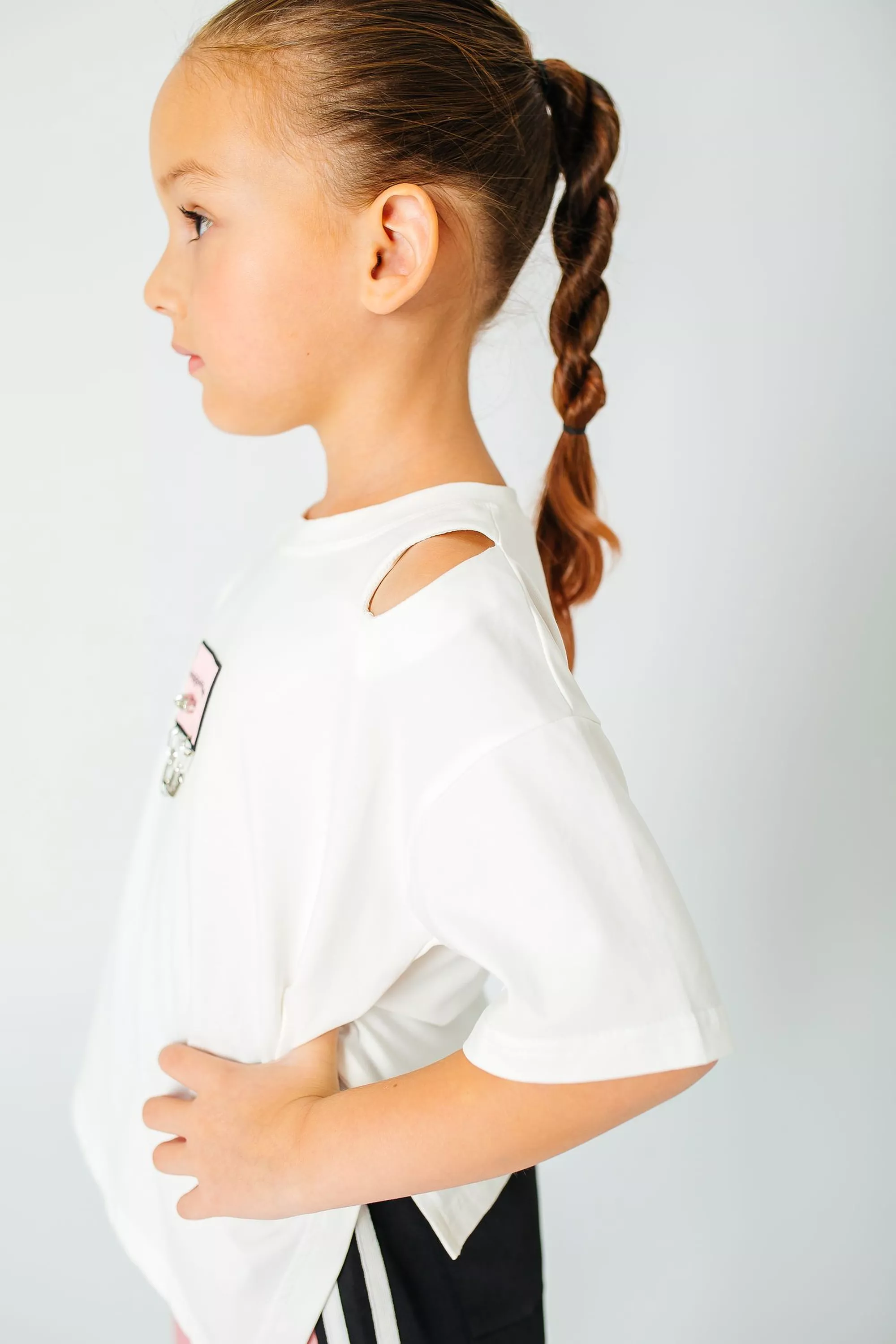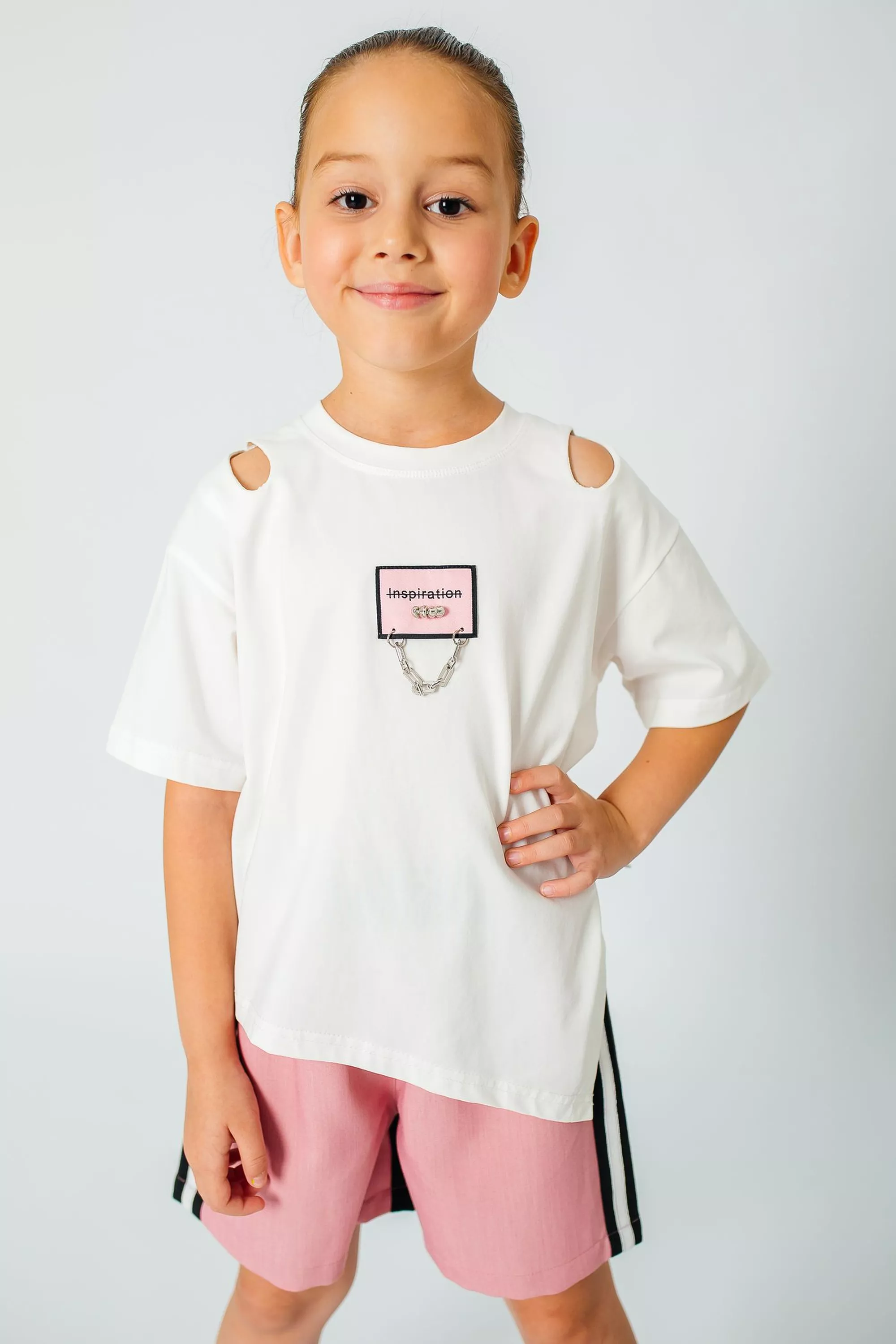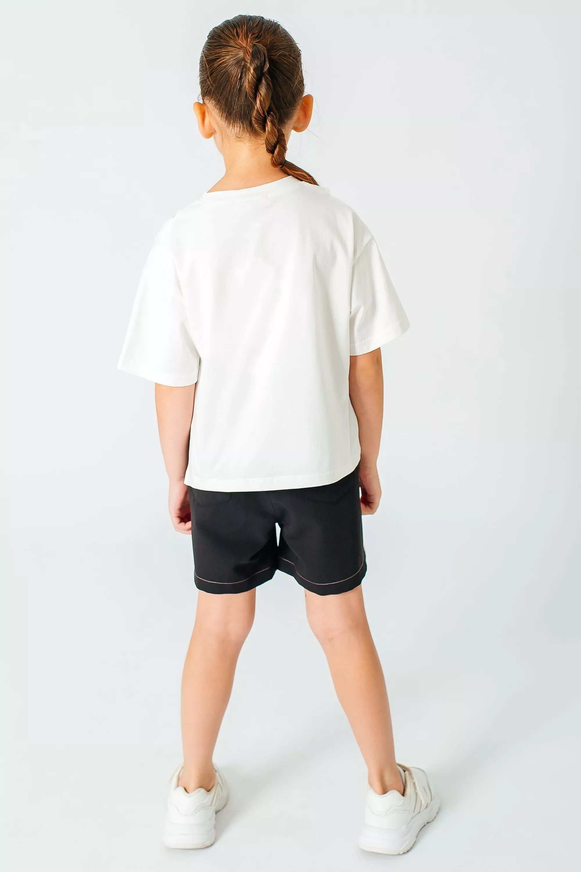 Короткий рукав обеспечивает хорошую вентиляцию, что особенно важно в теплую погоду. Такая футболка отлично подойдет как для прогулок, так и для активных игр на улице, позволяя девочкам чувствовать себя уверенно и комфортно. Коллекция Весна-Лето от COLABEAR сочетает в себе стильный дизайн и практичность, что делает ее отличным выбором для маленьких модниц.