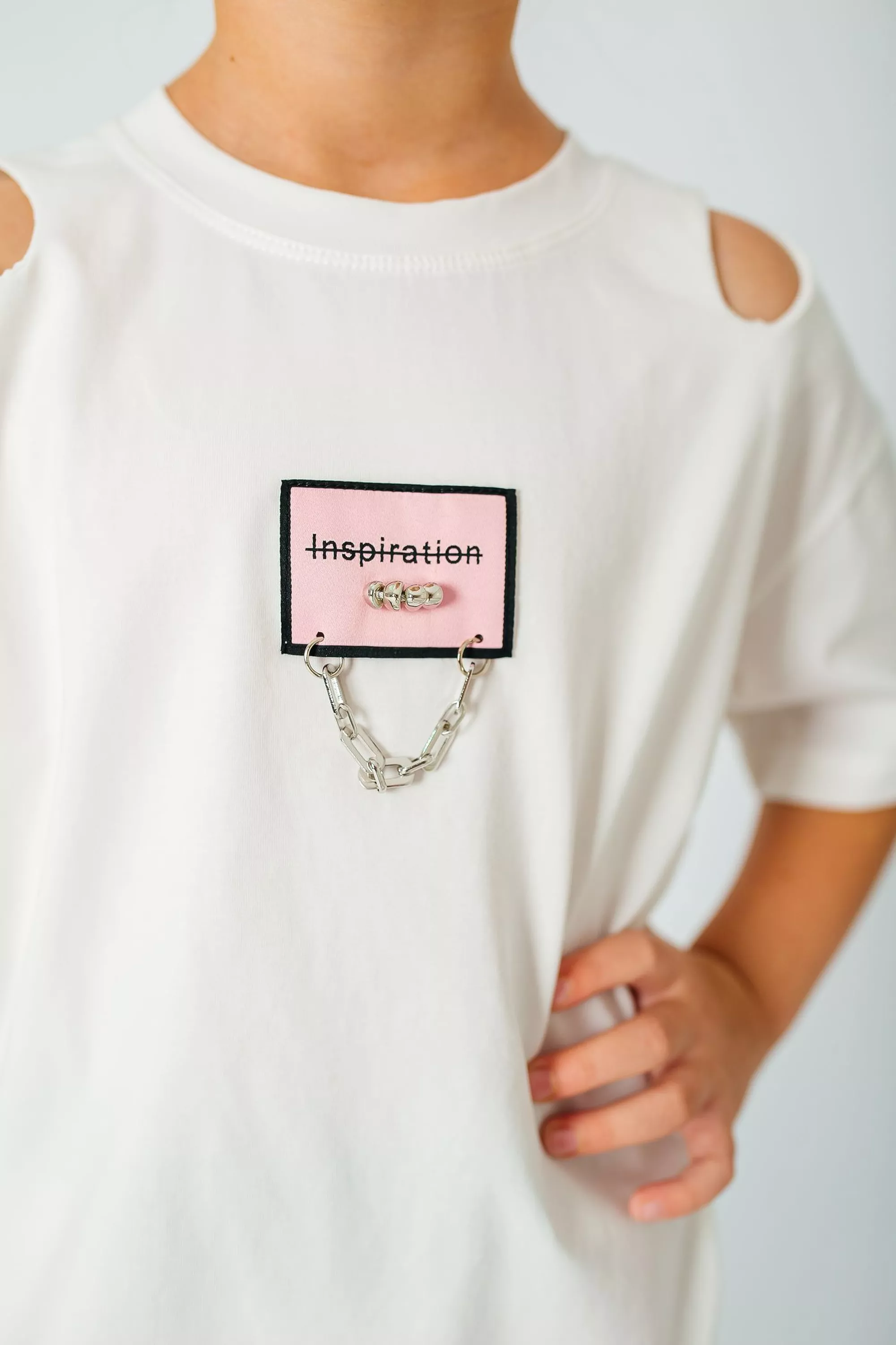 Особенным акцентом этой футболки являются нашивки и металлические элементы, которые добавляют ей оригинальности и яркости. Эти детали не только подчеркивают индивидуальность модели, но и делают ее модной и актуальной в соответствии с последними трендами.