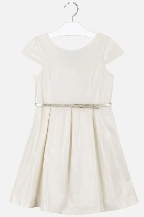 Нарядное платье на поясе - в гардеробе ребенка! Совершенно необыкновенное, оно должно нести в себе праздник, настраивая принцессу на романтический лад. Белое платье выглядит безупречно. Изящный лиф с рукавами-фонариками, слегка пышная юбка со складками, пояс на талии делают платье очень нежным и привлекательным.