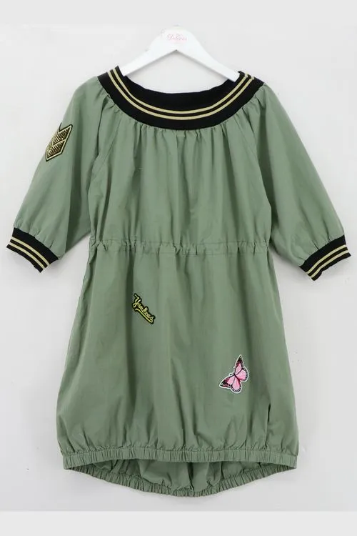 Вырез горловины «лодочкой», рукава с манжетами собраны на резинку.