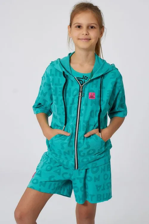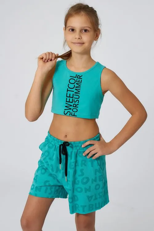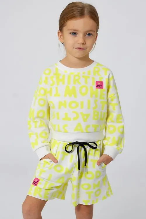 Шорты на каждый день, которые не потеряют внешний вид и не деформируются даже при частой стирке. Актуальный рисунок ткани – буквы. Многорядная резинка на поясе. При необходимости можно затянуть еще туже шнурком. Удобные боковые и задний карманы, приятный оттенок ткани. Для комплекта есть майка в тон.