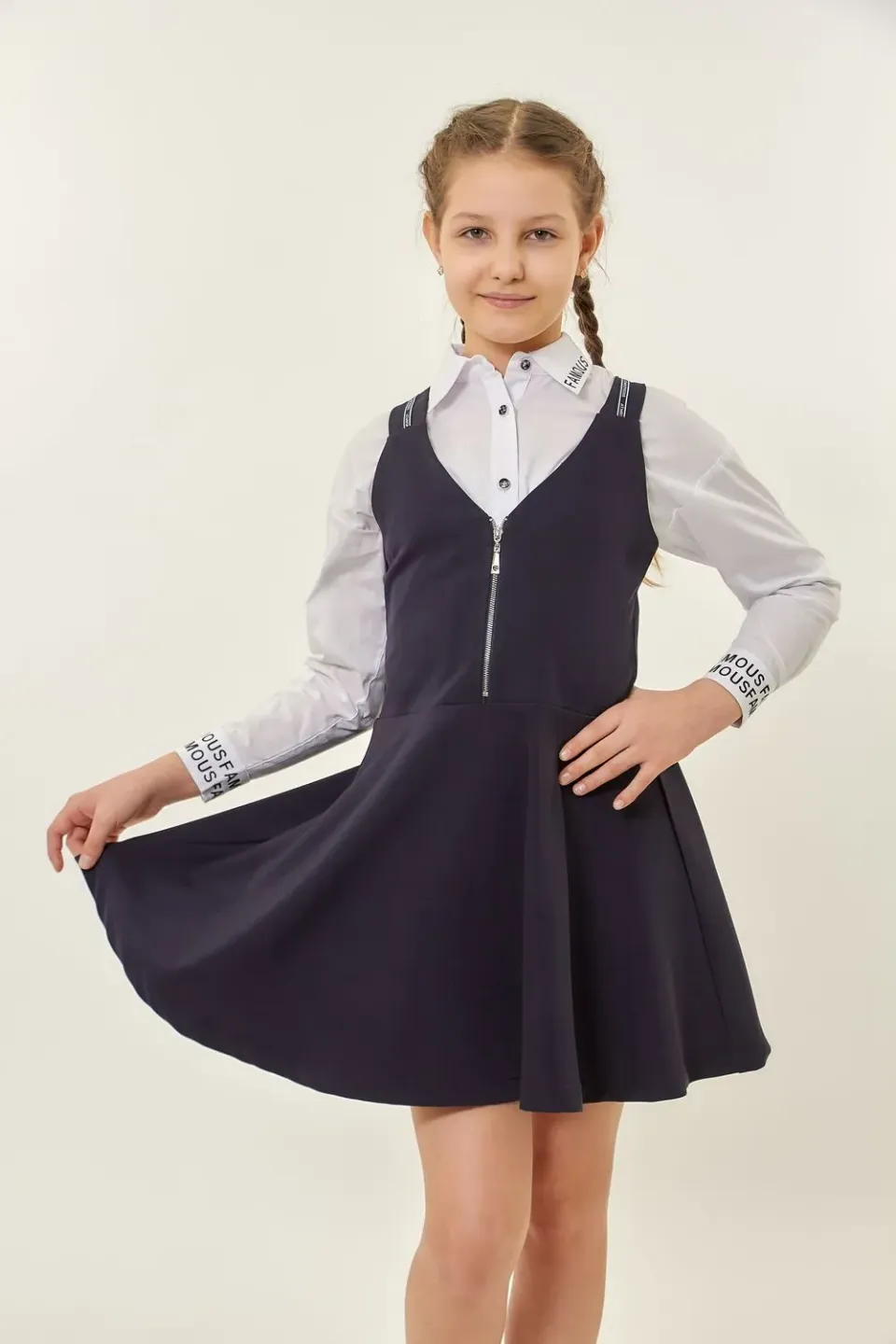 Стильный сарафан для современной школьницы. Фасон и пошив модели предполагает наличие блузки или водолазки.
