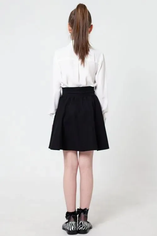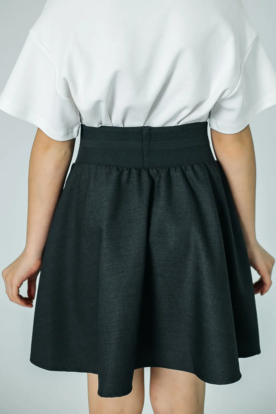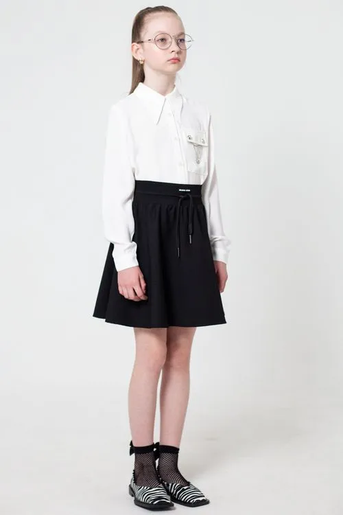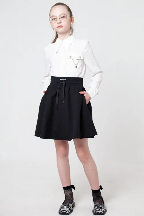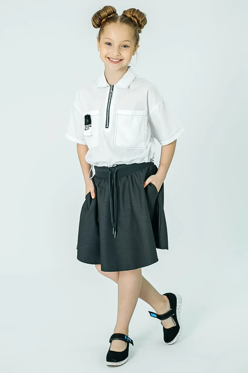 Школьная юбка для девочки сшита из практичной смесовой ткани, содержащей 55% вискозы. У неё высокая посадка, пояс на резинке и со шнуром для утяжки. Юбка коротка, пышная, с мягкими складками.. Хорошо смотрится слюбыми блузками и водолазками.