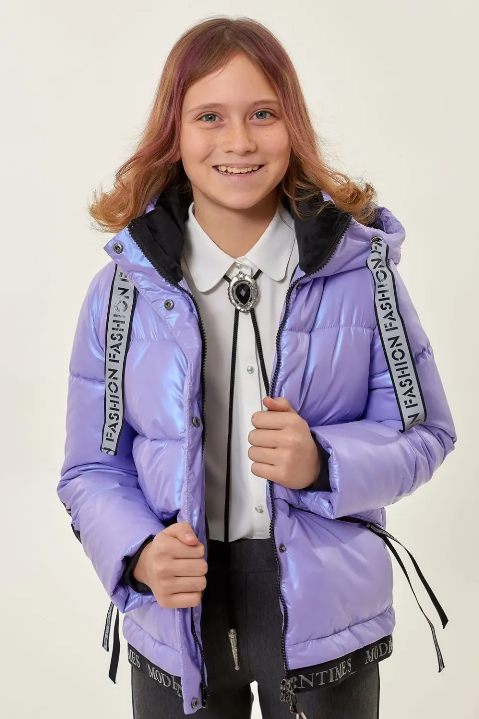 Модное пальто для девочки с капюшоном