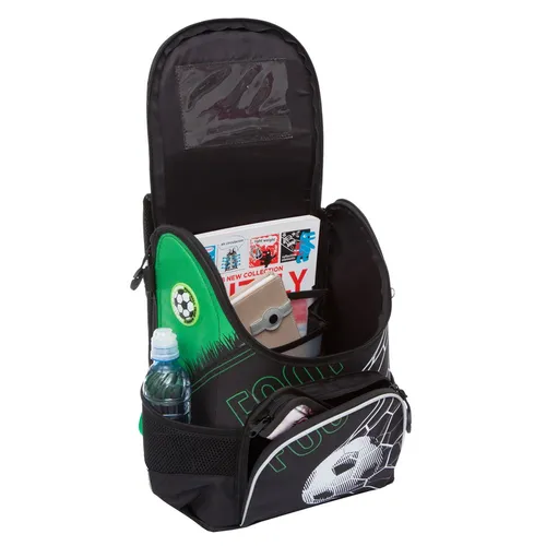 Одно отделение. Большой карман на молнии и два боковых кармана.