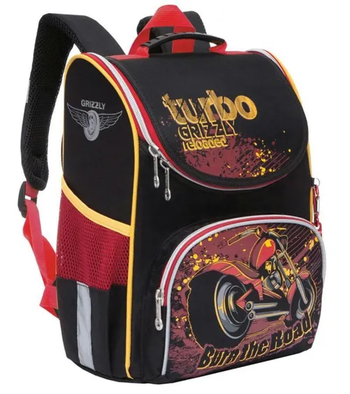 Компактный и суперлегкий ранец GRIZZLY серии RAm для детей школьного возраста с анатомической спинкой.