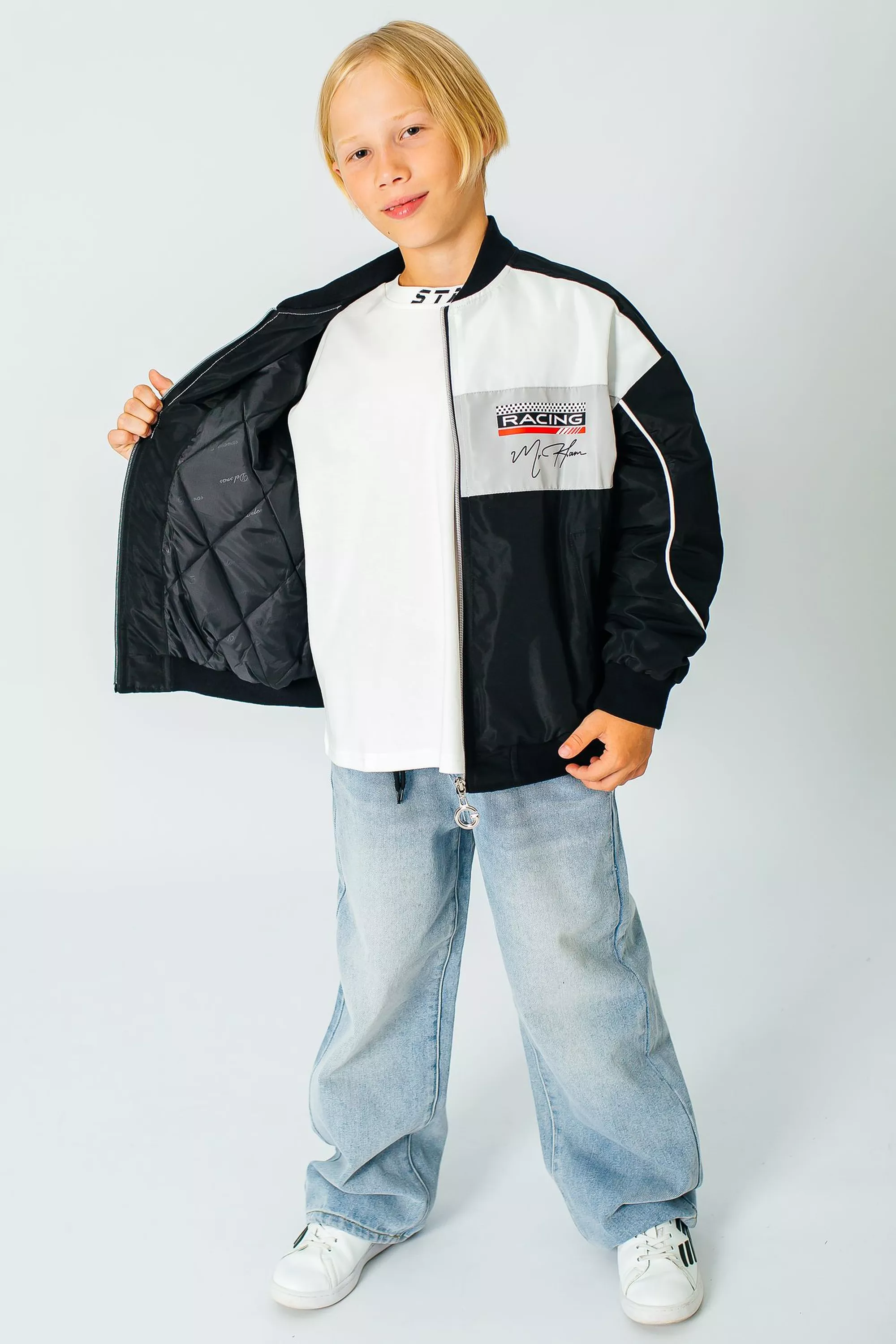 Куртка-бомбер для мальчика от бренда DELORAS — это идеальный выбор для весеннего сезона! Она выполнена из качественного материала швейка, который обеспечивает прочность и долговечность. Яркий дизайн в гоночном стиле непременно привлечет внимание и станет стильным акцентом в гардеробе вашего ребенка.
