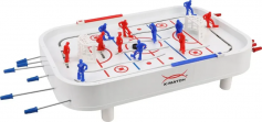 Игровое поле в сборе, фигурки хоккеистов 5+5 шт, фигурки вратарей 1+1 шт, шайба 2 шт, ворота 2 шт, счетное табло с окошком 2 шт, ножки 4 шт, наклейки 2 шт