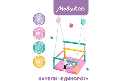 Качели детские деревянные с рисунком Moby Kids “Комета“ Единорог - Код 265356