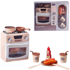 Этот игровой набор имеет в своем составе электрическую плиту, наборы посуды и продуктов.
