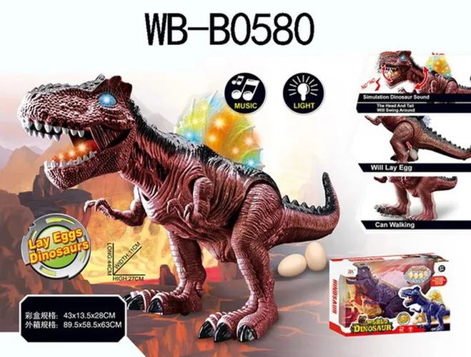 Динозавр, ходит, со световыми и звуковыми эффектами, откладывает яйца, 43х18,5х28 см - Код 131331