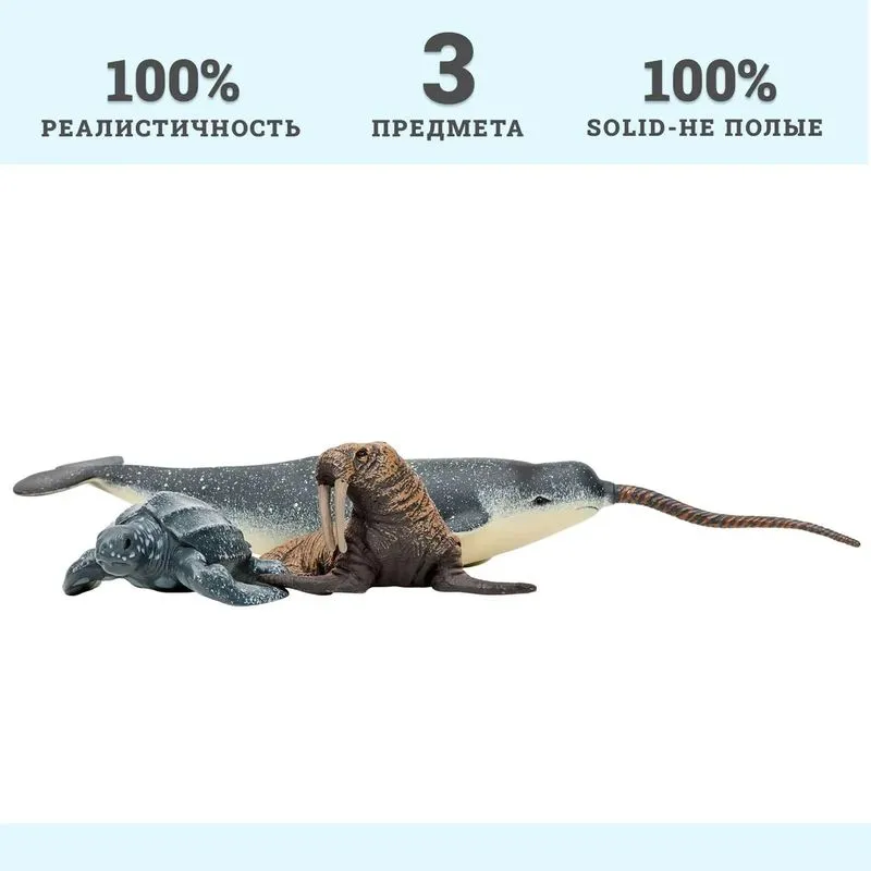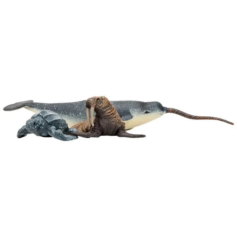 Фигурки игрушки серии "Мир морских животных": Нарвал, кожистая черепаха, морж