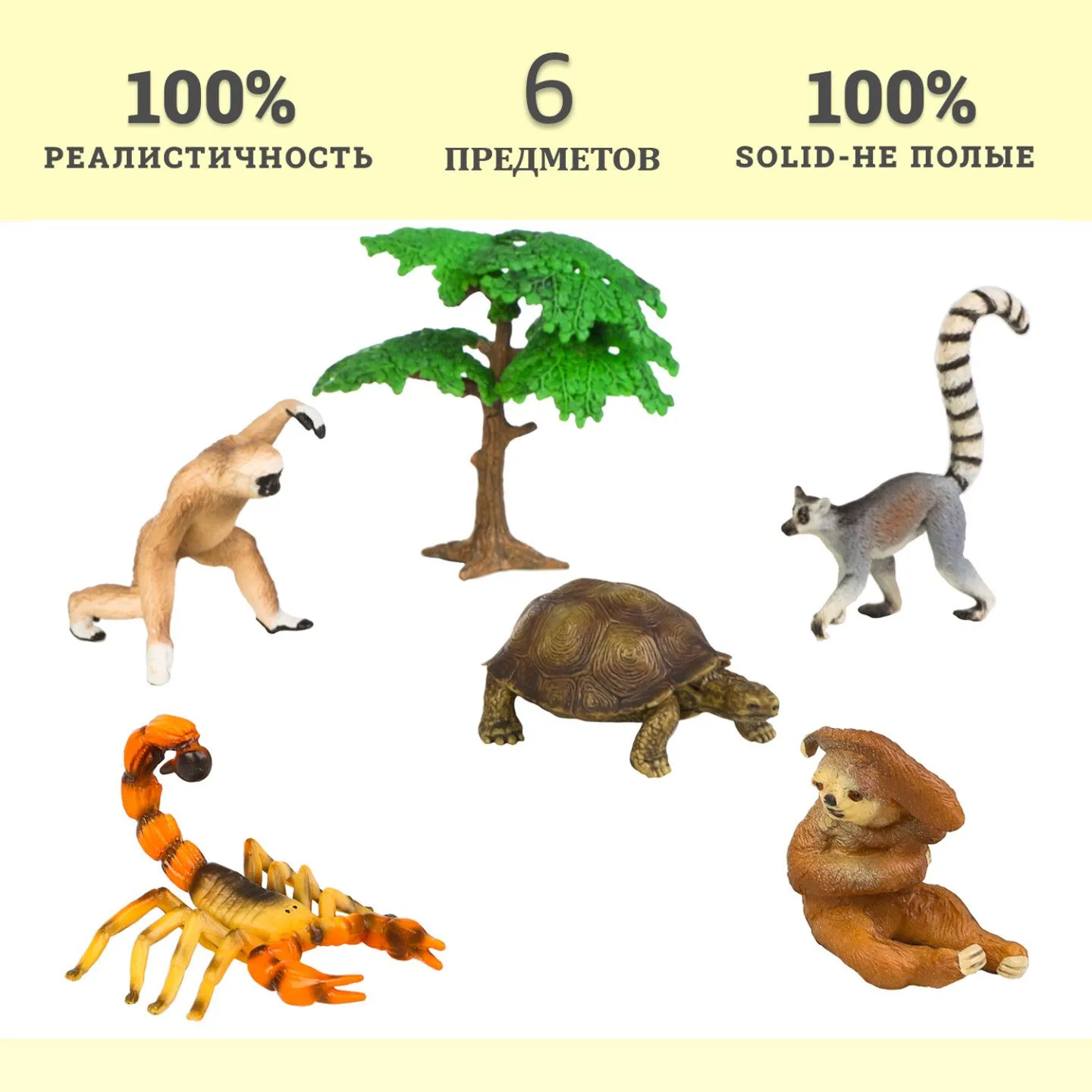 Набор фигурок животных серии "Мир диких животных": скорпион, обезьяна, лемур, черепаха, ленивец (набор из 6 предметов)