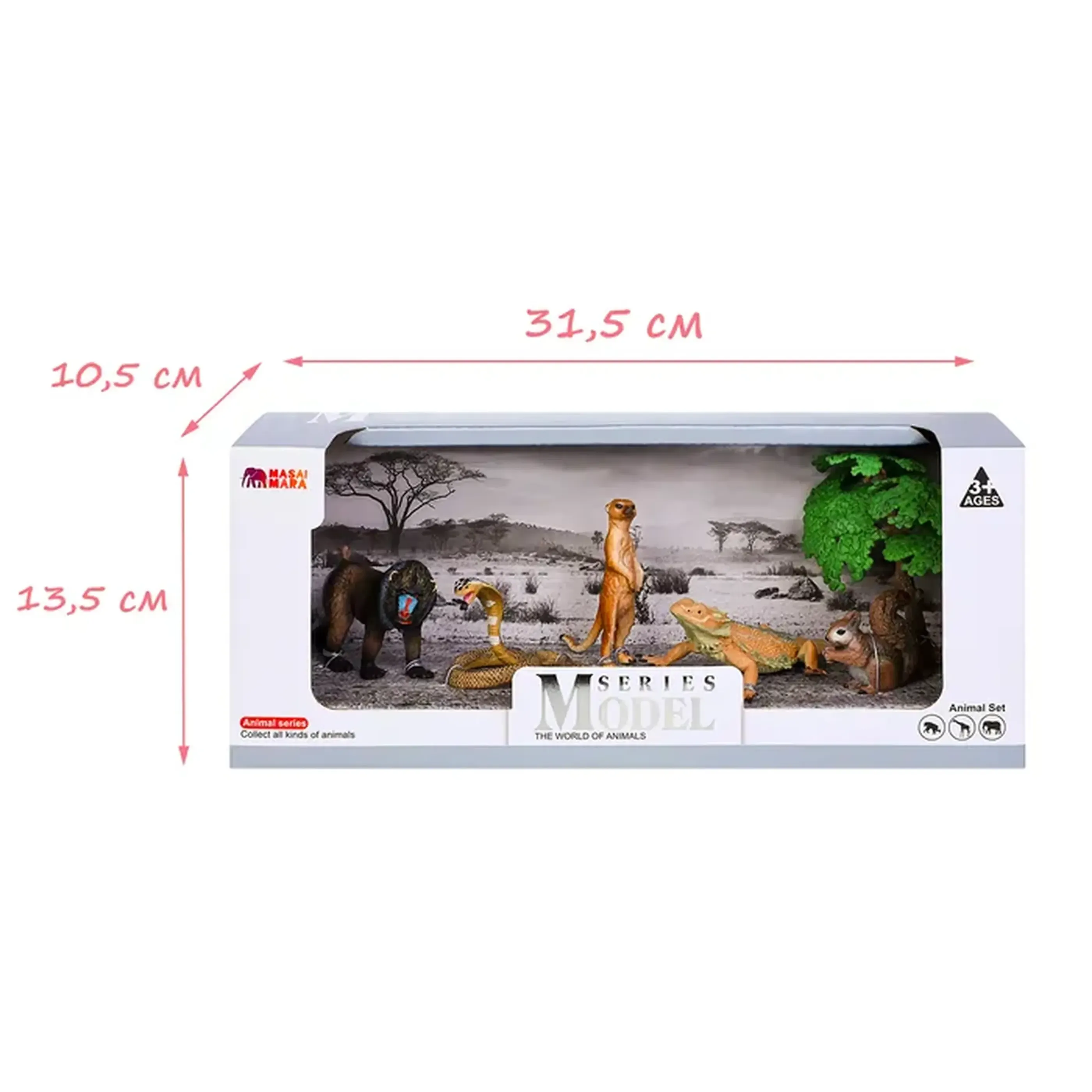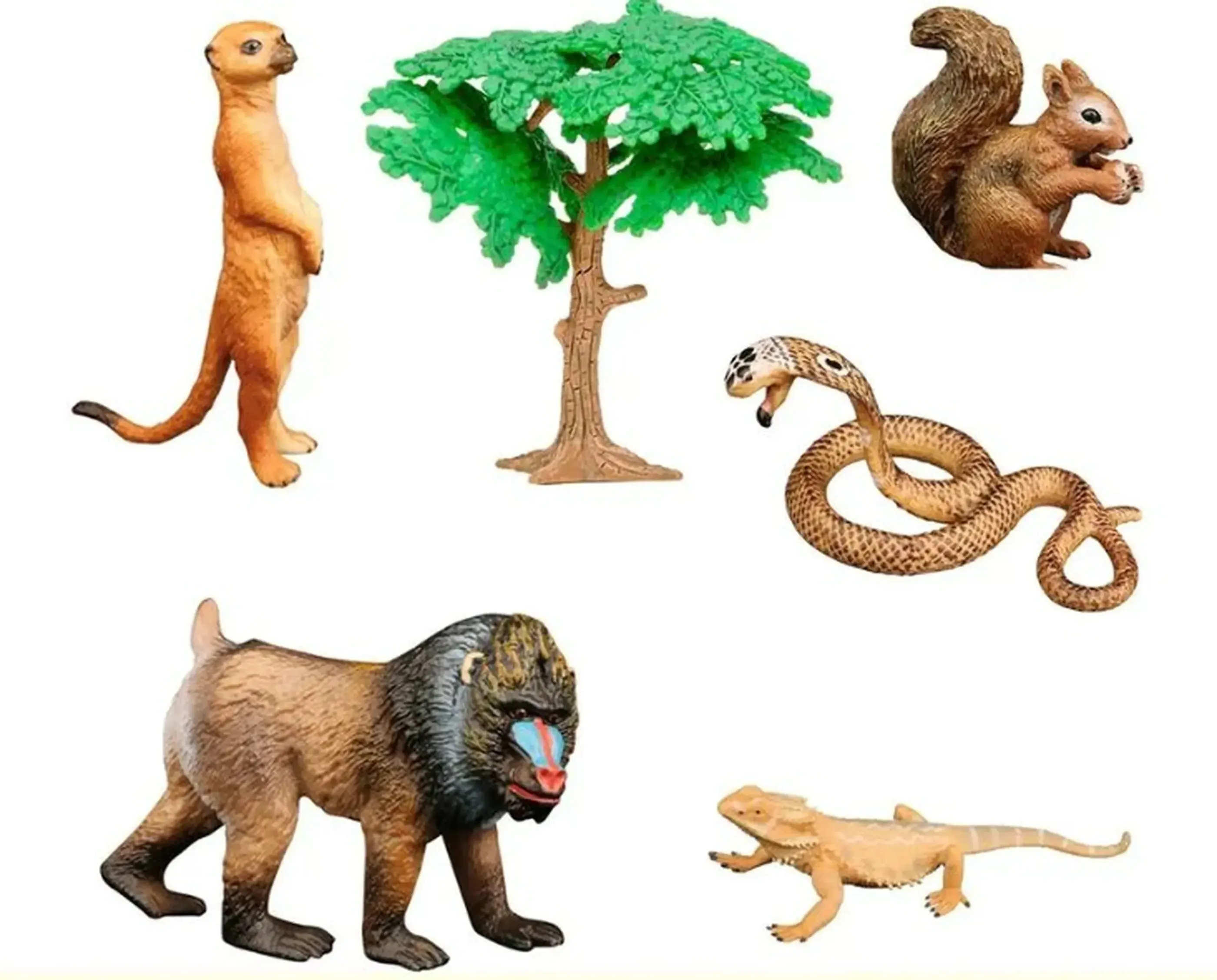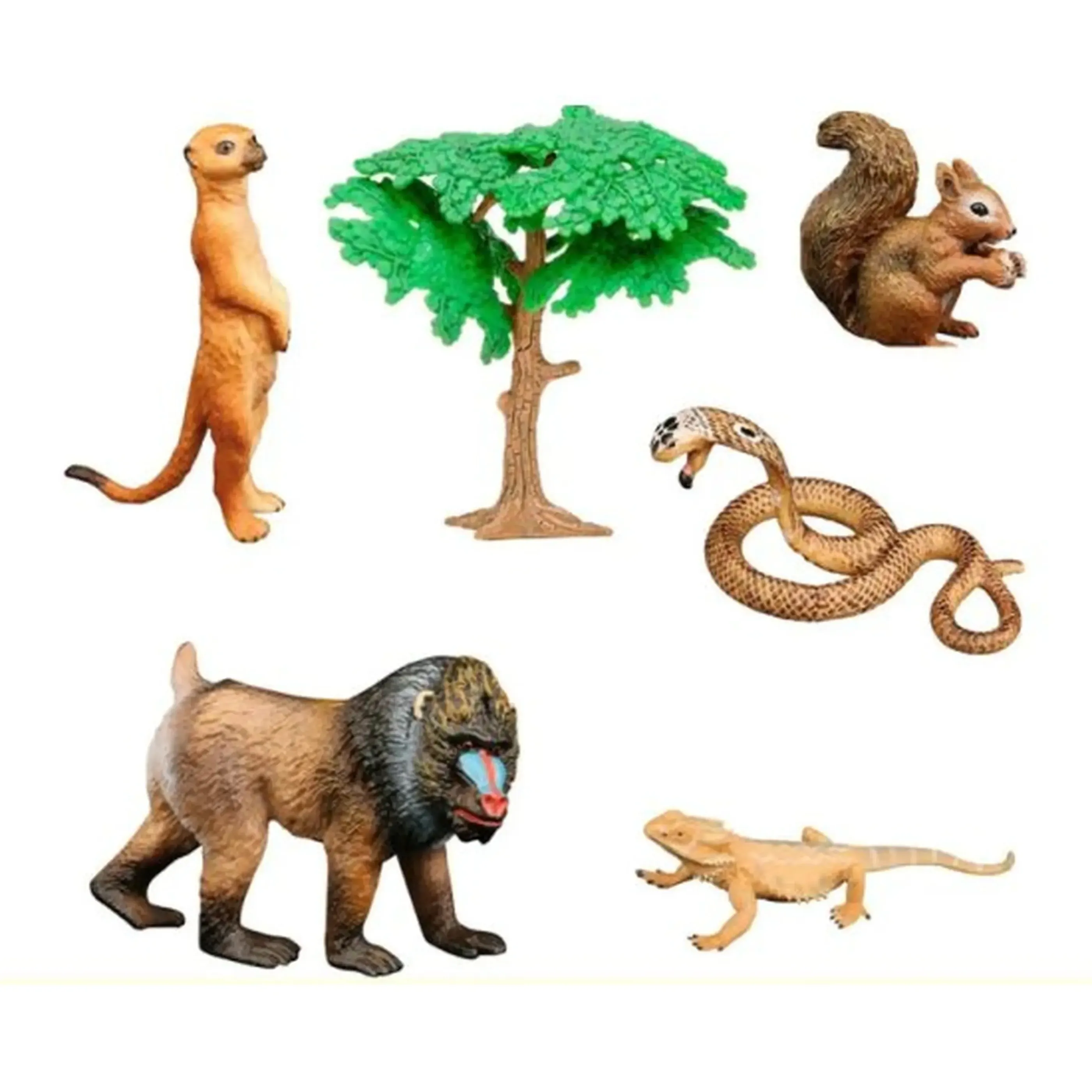 Набор фигурок животных серии “Мир диких животных“: мандрил, кобра, сурикат, варан, белка