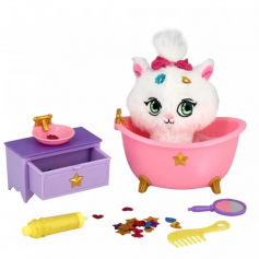 Комплект: плюшевый котенок 13 см, шиммерайзер (аксессуар для нанесения и хранения блесток), 100+ блесток, расческа, ванна, комод, аксессуары.