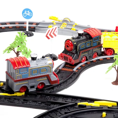 Можно играть вдвоём и проверить свою ловкость и реакцию: ребёнок выступает в роли настоящего регулировщика, где важно вовремя переводить стрелки, чтобы два паровозика не столкнулись друг с другом.