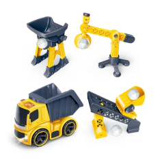 - это сразу 4 игрушки в одном наборе: один фрикционный автомобиль и 3 статичные единицы карьерной техники. Все игрушки обладают подвижными элементами, строительный автомобиль оснащён световыми и звуковыми эффектами. Можно загружать и перемещать специальные камни, идущие в комплекте.