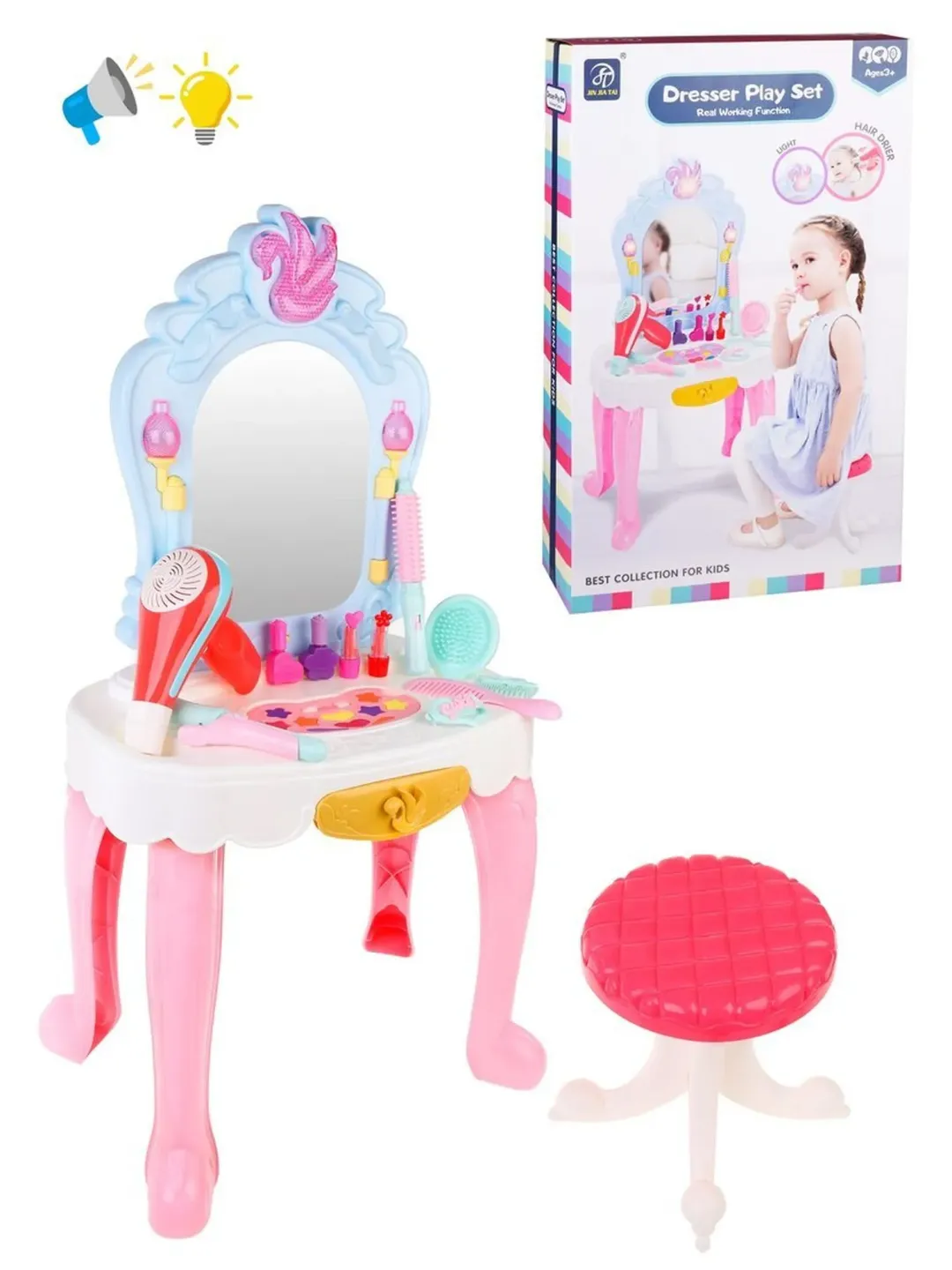 Игр. наб. “Стилист“, свет, звук, в компл. столик с зеркалом, стул, аксесс. 12шт. - Код 200918