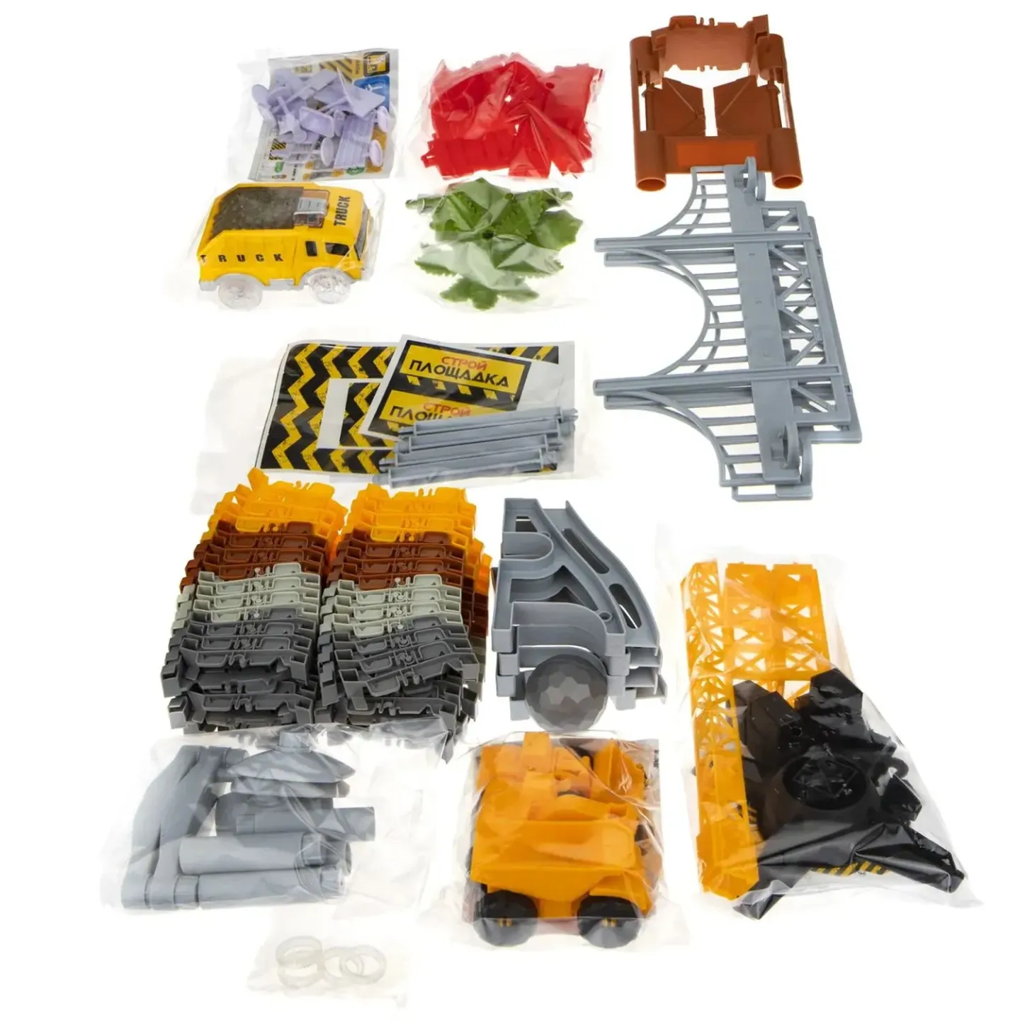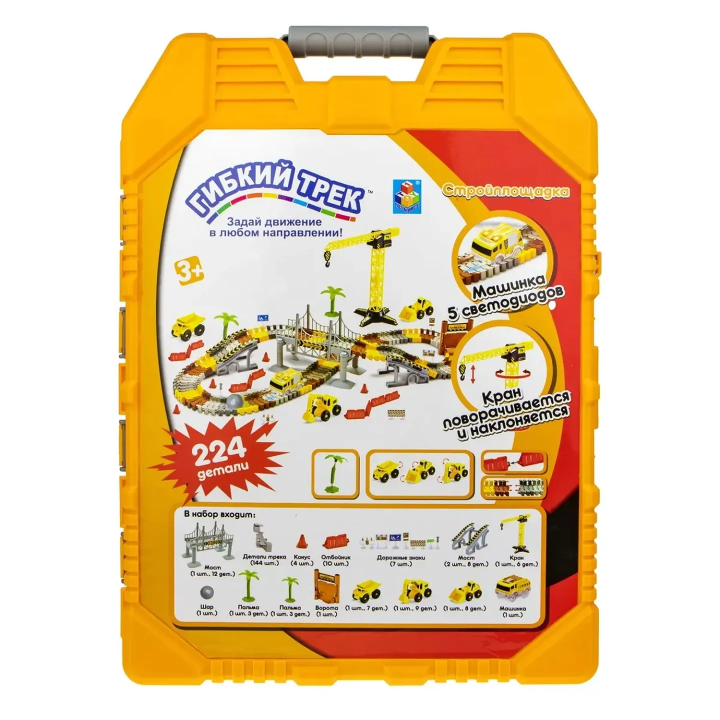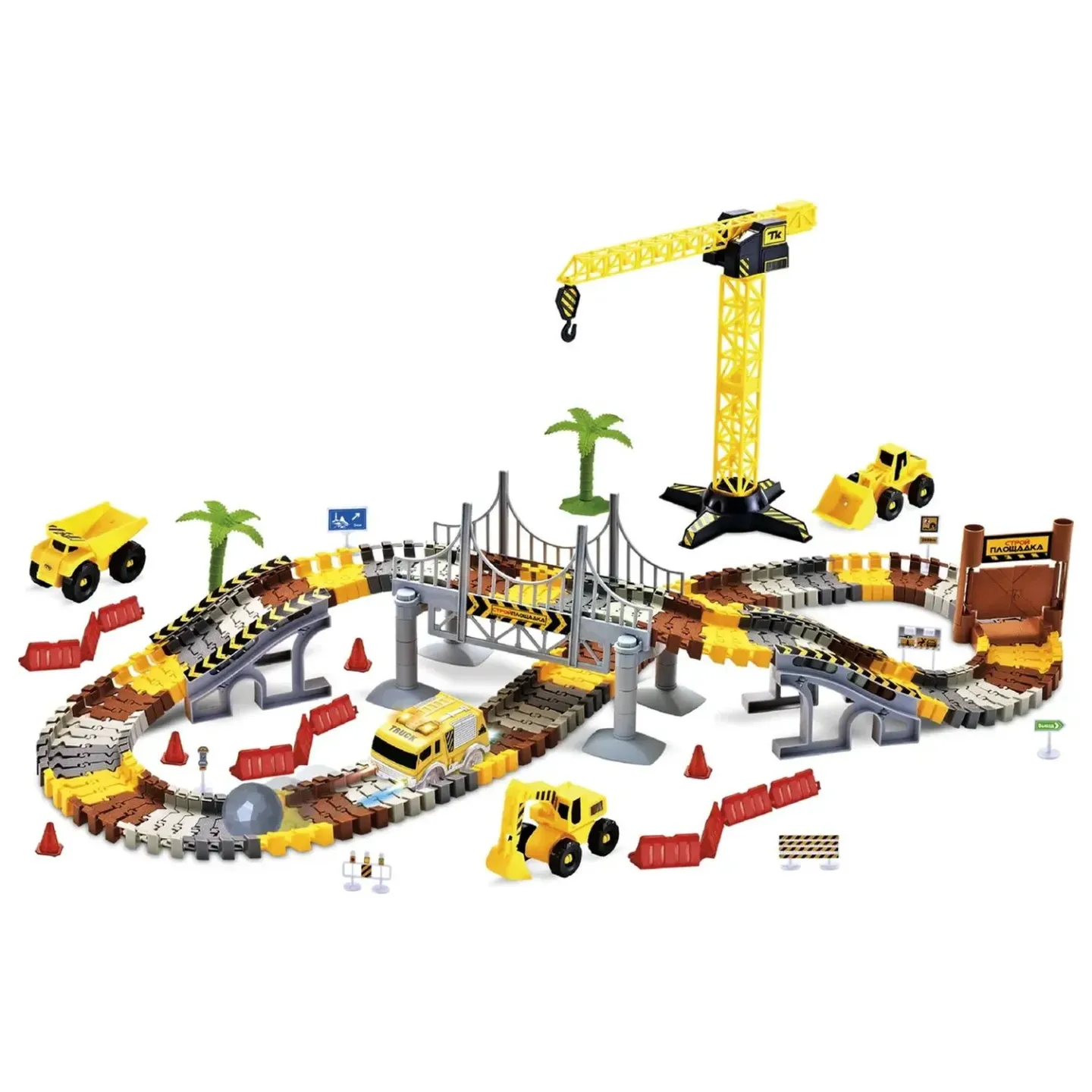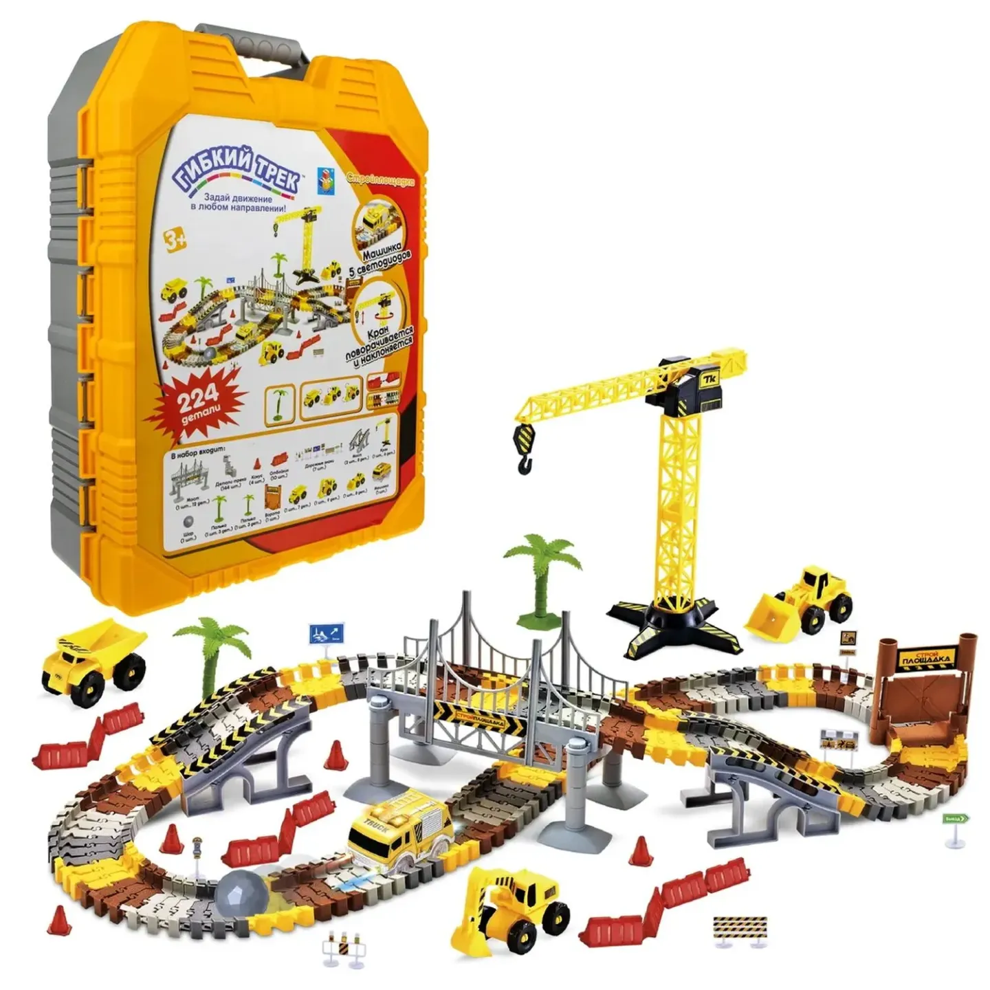1toy гибкий трек “Стройплощадка“ 224 дет, мост, ворота, дор.знаки, машинка свет, 3 доп.машин - Код 202841