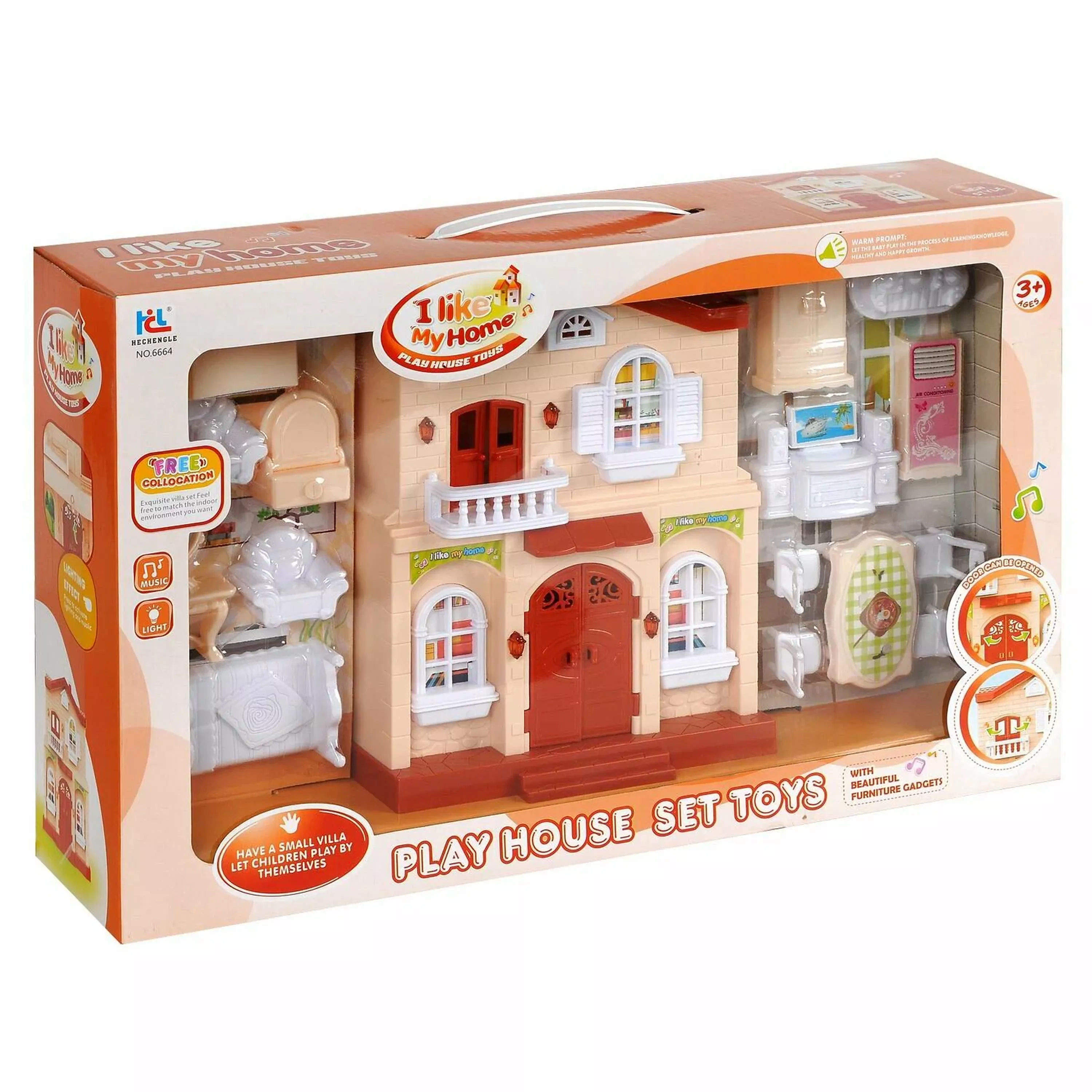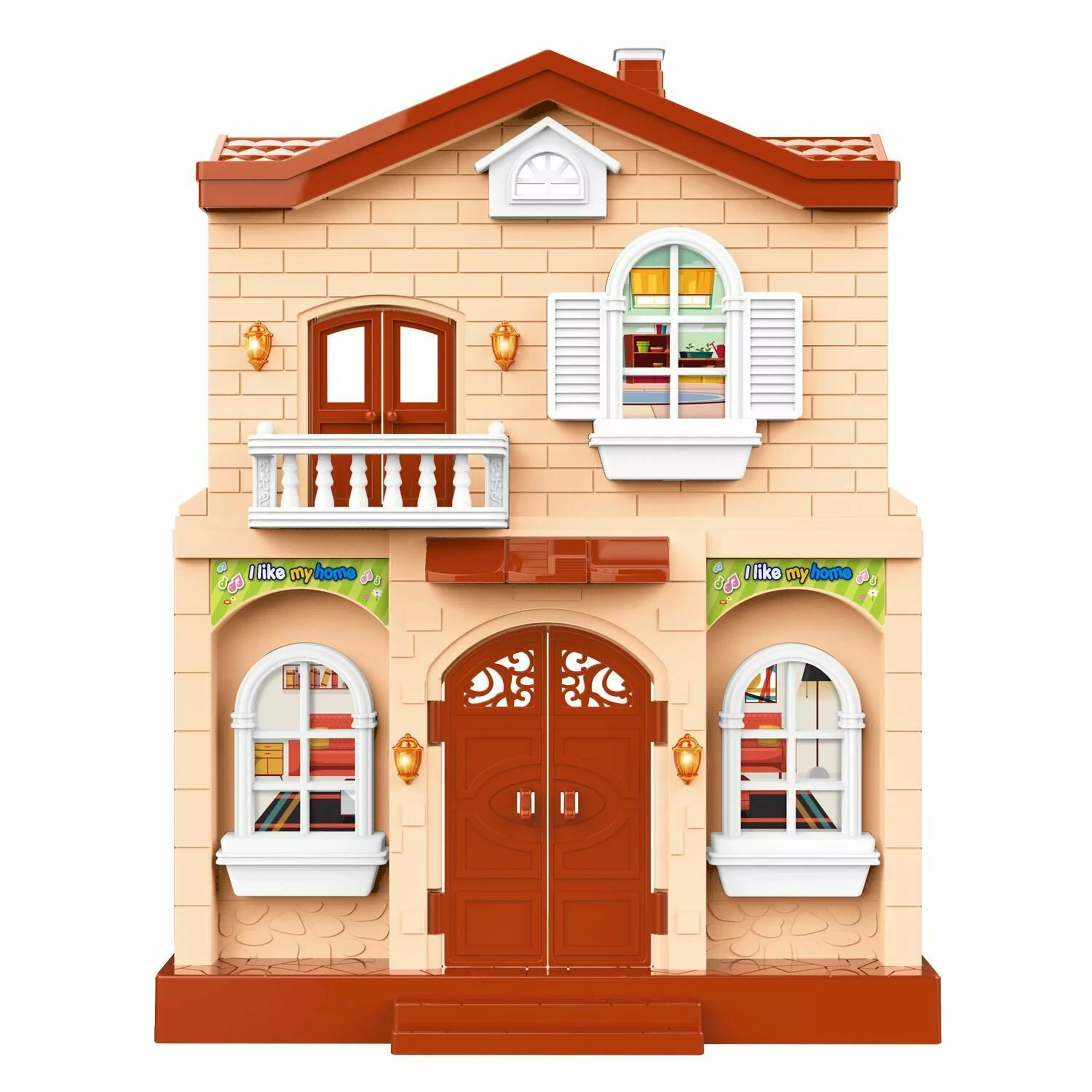 Дом кукольный "Мой новый дом" с мебелью, малый, бежевый, сборный, со звуковыми и световыми эффектами