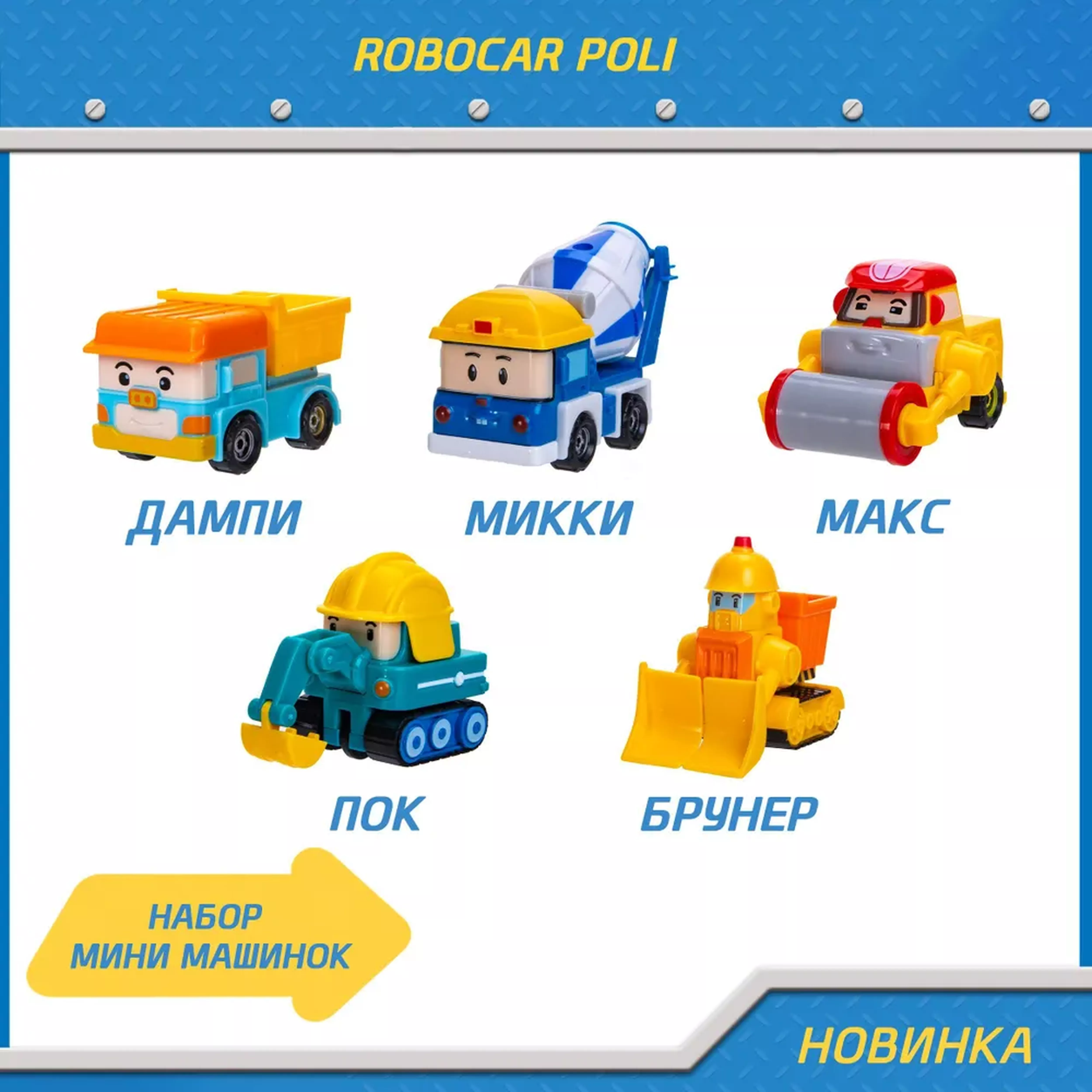 Игровой набор Robocar Poli из 5 машинок мини - Код 280410