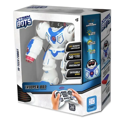 У этого робота 20 разных функций: он скользит по полу, ходит, поворачивается вправо и влево, поднимает руки, танцует и даже способен говорить на своем электронном языке. Киборг также умеет стрелять мягкими дротиками. Игрушка довольно большая — ее высота составляет 35 см. Робота можно программировать на совершение определенных действий.