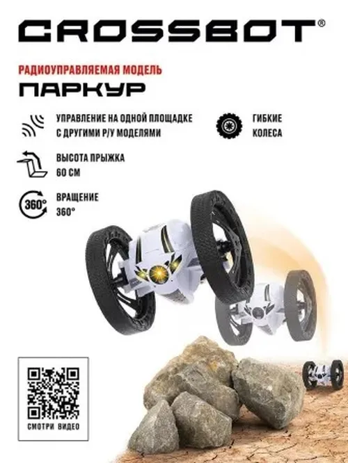 адиоуправляемая машинка Паркурумеет преодолевать крупные препятствия на своем пути, просто перепрыгивая через них! Высота ее прыжка достигает 60 см! Машина осуществляет движение во всех направления: вперед, назад, повороты вправо и влево. Скорость движения можно регулировать. Гибкие колеса для амортизации при падении. Машинка работает от аккумулятора Li-PoAA3, 7V380mAh (входит в комплект), пульт работает от 3-х батареек типа AA на 1,5V (не входят в комплект). Зарядка аккумулятора осуществляется с помощью USB-кабеля (входит в комплект).