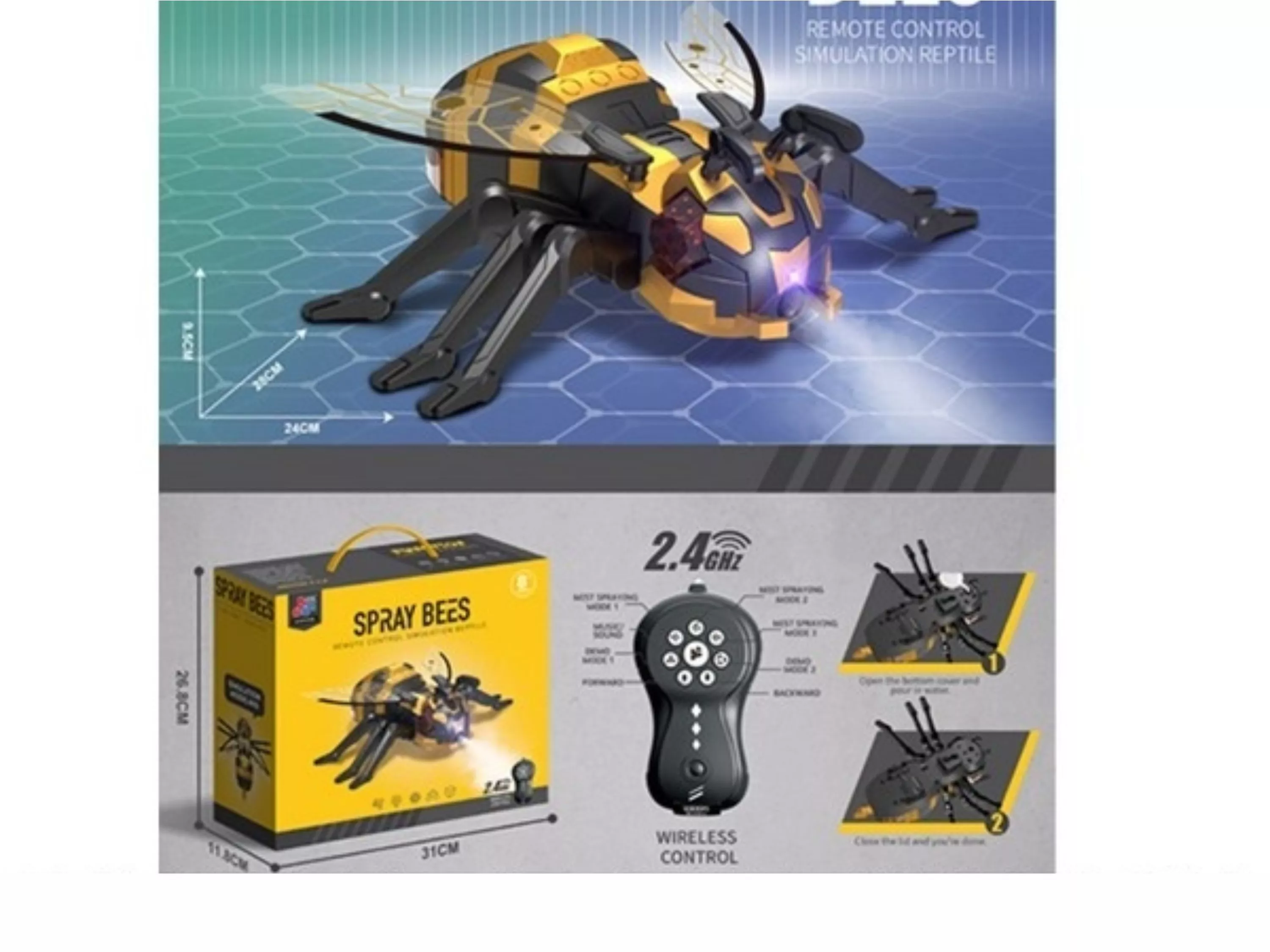 Пчела на пульте р/у, световые и звуковые эффекты, пар, в/к 31*11,8*26,8 см - Код 276612