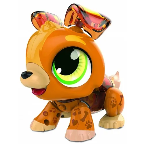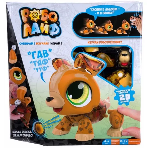 - Набор, состоящий из 20 ярких пластиковых деталей, позволяет детям собрать интерактивного робота щенка.