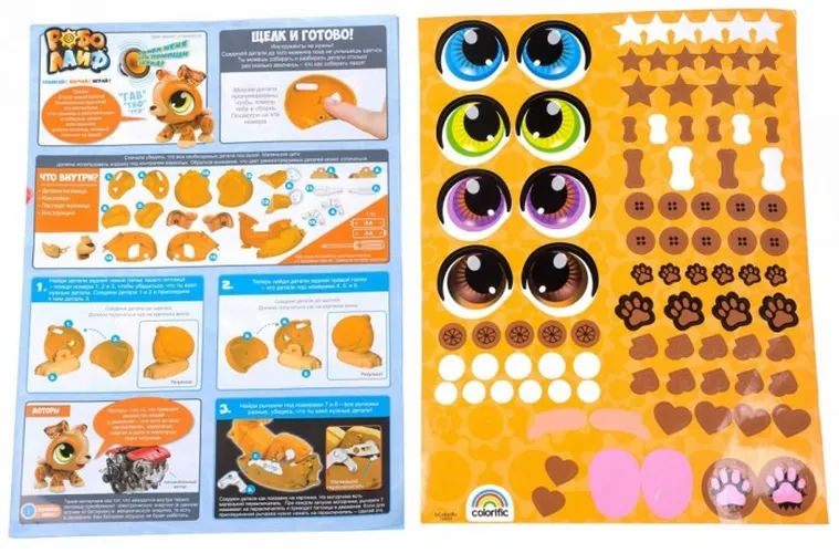 - В комплекте есть подробная инструкция с пошаговыми фотографиями, а также наклейки, которые «оживляют» зверька.