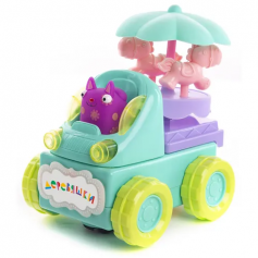 Во время движения у машинки светятся фары, а также вращается карусель с лошадками в ее кузове. Кроме того, она может обходить препятствия.