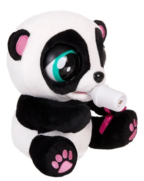 Панда интерактивная, со звуковыми эффектами, шевелит глазами и ртом. Можно кормить, поить и уложить спать, реагирует на свет и на поглаживания. 10 функций.