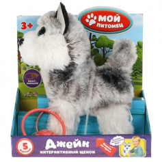 Этот очаровательный щенок совсем как настоящий. У Джейка красивые глазки и умилительная мордочка. Бело-серая шёрстка щенка очень приятная на ощупь. Милая игрушка подарит малышу массу положительных эмоций и научит заботиться о домашнем любимице.