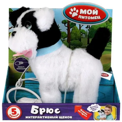 Интерактивный щенок Брюс 22см ходит,на поводке, озвуч. в кор Мой Питомец - Код 192886