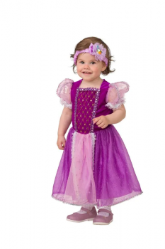 Стать Принцессой Рапунцель можно, даже не отращивая длинные белокурые волосы. Костюм от фирмы Батик, созданный по лицензии со студией Дисней, является ярким образом из популярного мультика «Рапунцель». Яркий и нарядный костюм для очаровательных малышек создаст волшебное настроение для любого праздника. Комплект костюма состоит из лилового платья и повязки.