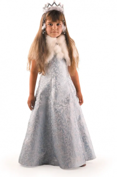 Карнавальный костюм Снегурочки Жемчужной очарует всех, кто придет на новогодний праздник. В этом наряде девочка почувствует себя настоящей зимней принцессой из сказки. Костюм выполнен из плотного, не мнущегося материала с узором жаккард. Изысканный жемчужный цвет будет к лицу любой маленькой красавице. В комплект образа Снегурочка Жемчужная входит платье, манто и корона.