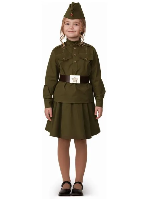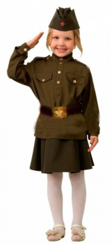 Карнавальный костюм "Солдатка" (гимнастерка,юбка,пилотка,ремень) р.28 - Код 130158