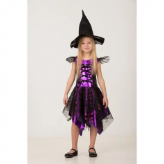 Карнавальный костюм для девочки "Ведьмочка 2" (Платье, шляпа) р.122-64 - Код 97432
