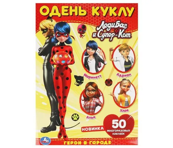 ГЕРОИ В ГОРОДЕ. Одень куклу с наклейками. Леди Баг и Супер кот. 210х290мм, 4 стр. Умка - Код 177055