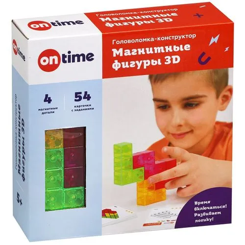 Головоломка-конструктор "Магнитные фигуры 3D", 4 детали, 54 задания