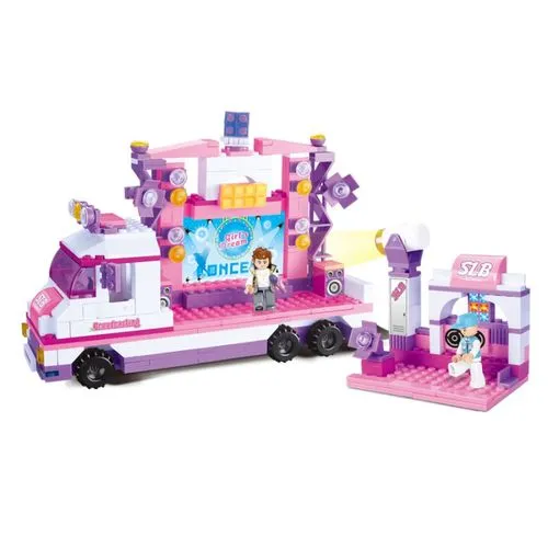 Конструктор пластмассовый Sluban "Розовая мечта: Гастрольный тур" (дискотека на колёсах, автомобиль, - Код 184891