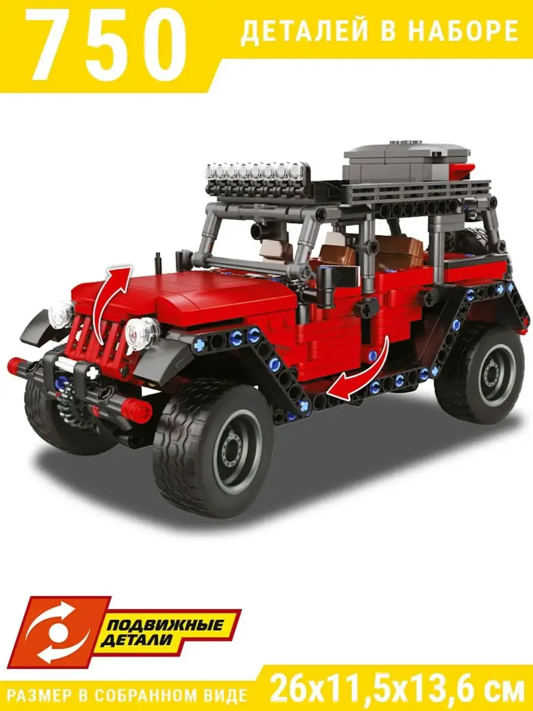 Конструктор Mioshi Tech “Пуллбэк: Красный джип“ (750 дет., 26 см, пружин. механизм) - Код 242497