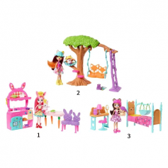 Маленькие фантазёры будут обрадованы красочным игровым набором Enchantimals. Он разработан специально для сюжетно-ролевых игр, учит фантазировать и творчески мыслить. Детям понравится играть с верными маленькими друзьями и погружаться в мир, где забота — это главное. Соберите все наборы и постройте волшебный мир Enchantimals, чтобы написать свою добрую сказку. Каждый набор продаётся отдельно. Разыграйте истории о зачарованном мире с игровыми наборами Enchantimals, каждый из которых выполнен в уникальной тематике с дополнительными аксессуарами. Выбирайте из 3 наборов для безграничного веселья. В наборы входят куклы Enchantimals и их друзья-зверушки, с которыми у них особая связь. Брен Миша и Снорр готовятся отправиться в мир снов в их спаленке: они нарядились в колпаки для сна и уютно устраиваются каждый в своей кроватке. Фелисити Лис и Флик готовы к приключениям на свежем воздухе: в костюмах исследователей они с удовольствием прокатятся на подвесных качелях и заберутся на дерево.
