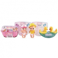 В наборе представлена розовая ванночка, качели-балансир и 2 куколки (6 см): одна видна за прозрачной частью упаковки, а другая – спрятана за непрозрачной. Также в наборе есть свидетельства о рождении для каждого малыша. Они содержат следующие поля для заполнения: имя, пол, дата рождения, имя родителя (владельца игрушки).