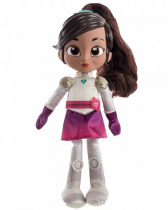 Принцесса Нелла в образе рыцаря изготовлена из мягкого на ощупь, приятного плюша с качественным наполнителем внутри. На героине – блестящие доспехи, которые дополнены розовым ремешком, фиолетовыми перчатками и юбкой. На шее у нее голубой кулон в форме сердца – главный источник силы. Все детали внешности хорошо прорисованы, поэтому кукла легко узнаваема. Волосы можно расчесывать, укладывать и заплетать в прически.